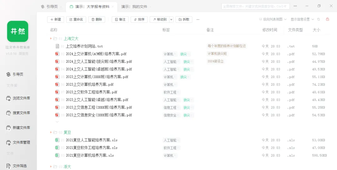 为整理文件贴心定制,展示清晰、整理高效、筛选灵活,特色功能:“文件库支持、多文件夹同时打开、打开状态记忆、自由拖拽排序、标签、备注、横向平铺视图、文件筛选、批量删除、批量重命名、批量标签、批量备注、批量拖拽移动、文档去重、自动整理 …”等,软件支持win系统,完全免费。