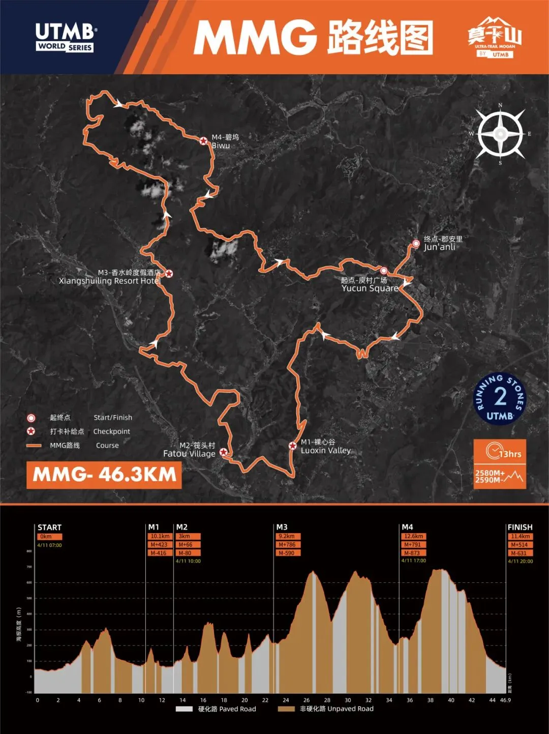 基于UTMB®世界系列赛官方评级体系,结合本次赛事赛道距离、累计爬升与难度标准,本次赛事各组别跑石数量(4颗/3颗/2颗/1颗)均严格按照UTMB®规则核定,确保公正规范,助力大家冲击总决赛名额。