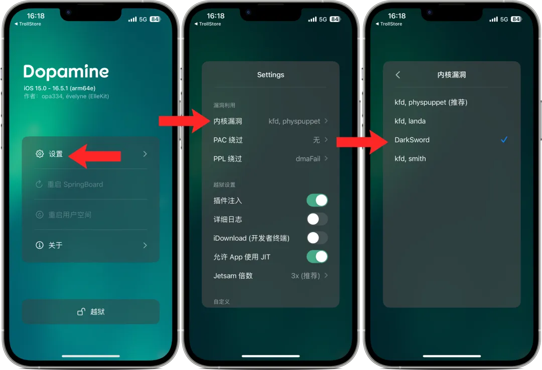 添加 DarkSword 内核漏洞利用程序作为选项
