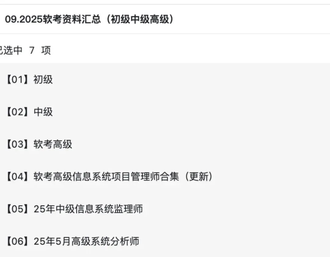 2025年下半年最新软考资料合集,包含高级、中级、初级科目所有资料(高项、项目集成、软设、网工……)