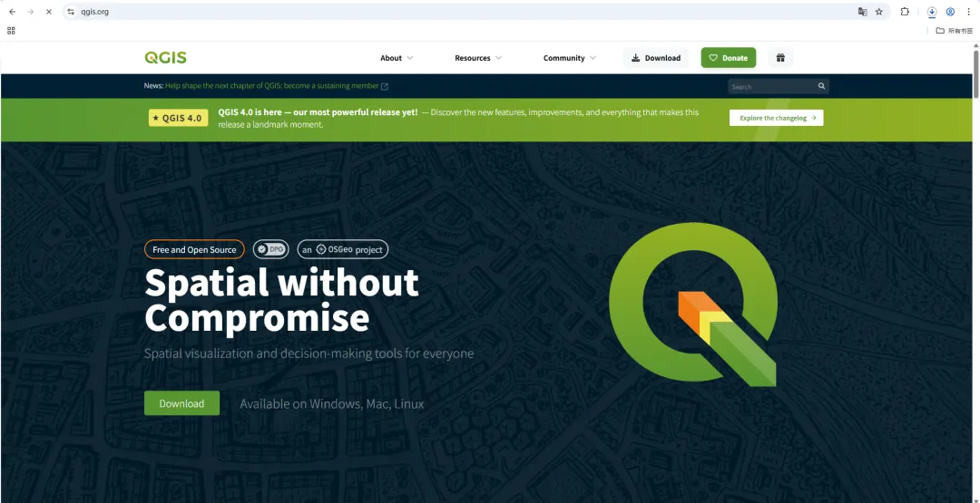 下载QGIS:打开官网 https://qgis.org/,根据自己的电脑系统(Windows、Mac),下载对应版本,安装步骤和普通软件一样,下一步就好 -