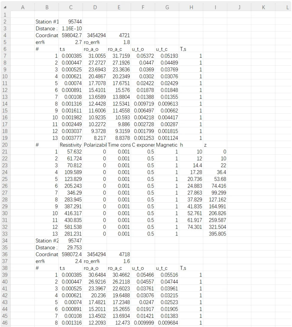 – lines/<line>(6 列):Distance, X, Y, Z, Resistivity, log10(Resistivity)
