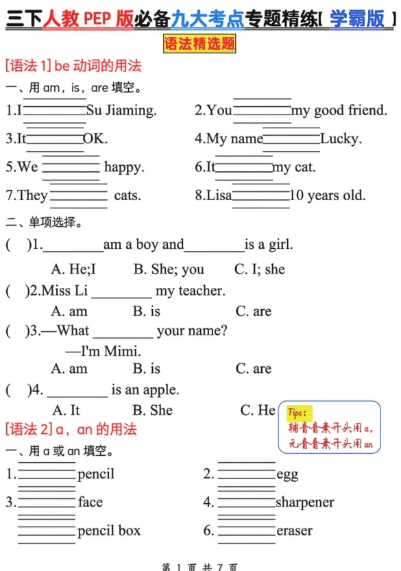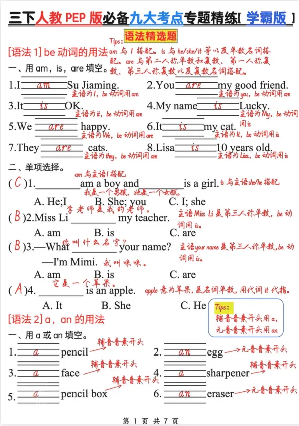 26春三年级下册英语人教PEP版【必备九大考点专题精炼】含答案14页,可打印
