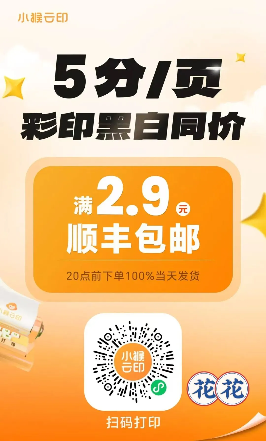 黑白彩印都只要5分钱/页,满2.9元还能顺丰到家