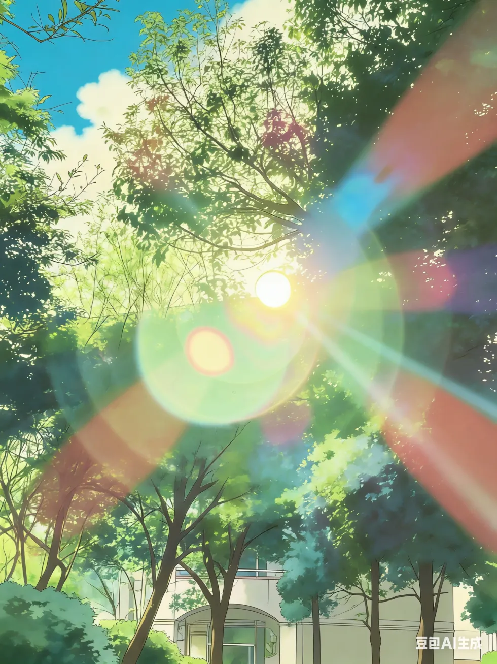 阳光穿过香樟与翠柳