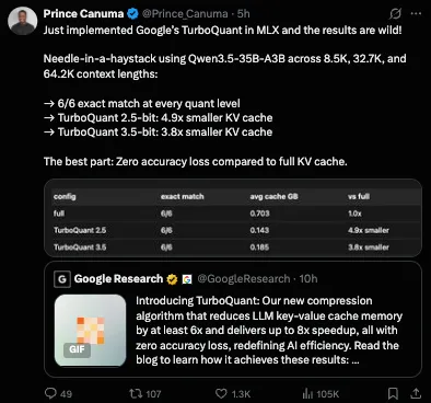 一句话介绍:TurboQuant 通过 PolarQuant 几何重构与 1 比特 QJL 校正层的组合技术,将大语言模型和向量搜索的内存占用压缩至约 3 比特/参数,在几乎无精度损失的前提下,使 16GB 内存设备也能高效运行长上下文 LLM 应用,显著降低部署成本并提升推理速度。