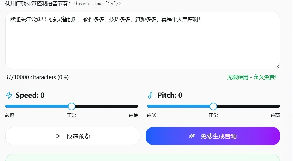 又一个机房可以用的AI工具:文本转语音,免登录免费。