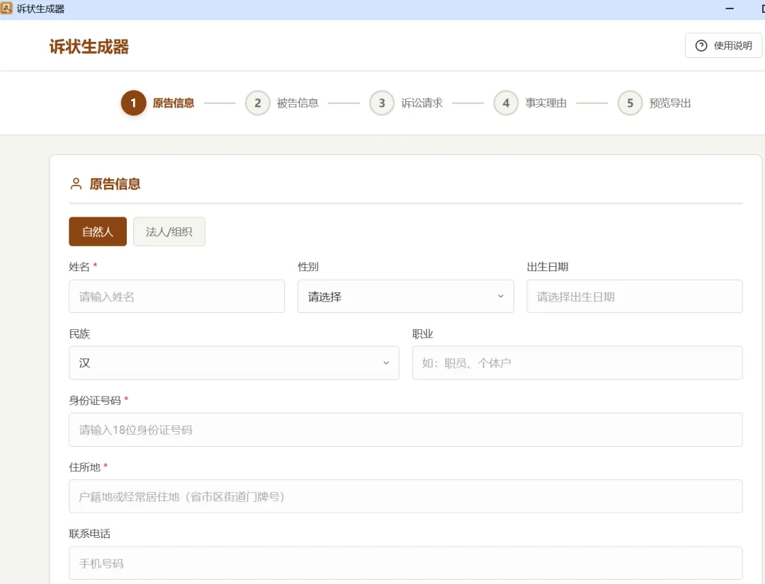 6、【网站】起诉状生成器V1.0,自动生成起诉状; -