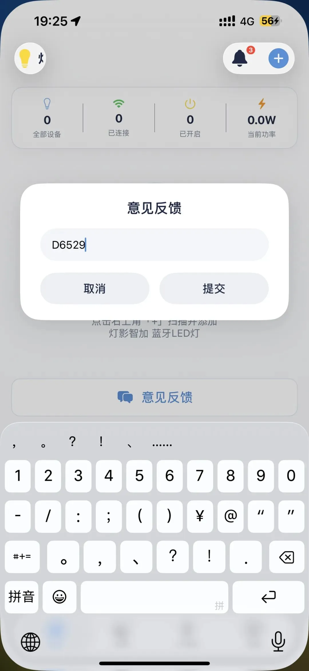 2、在意见反馈中输入D6529