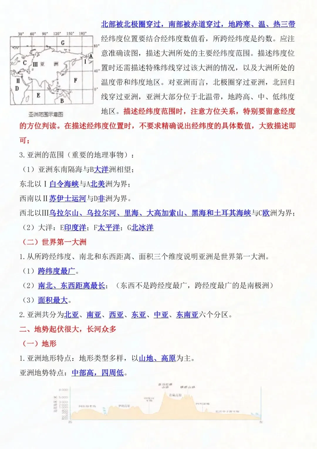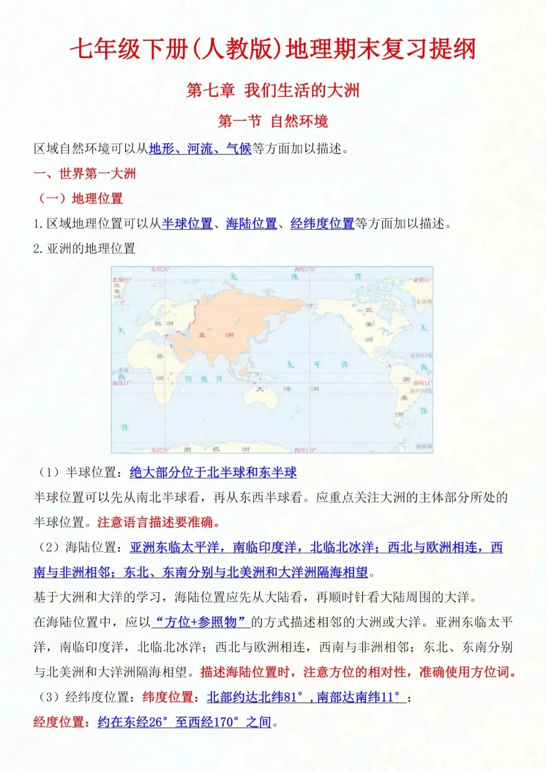 今天老师给大家整理了:七年级下册地理期末复习提纲电子版可打印!