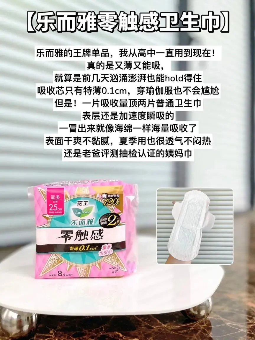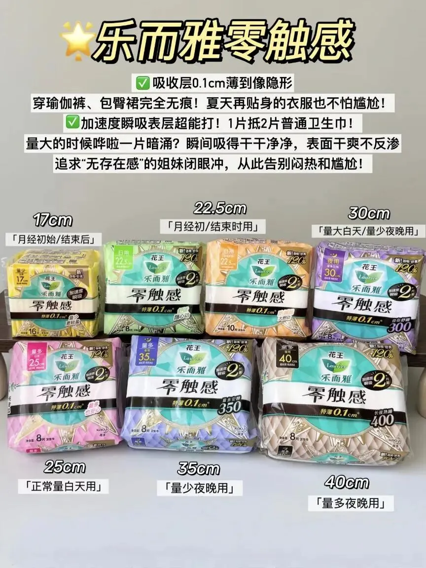 经期好搭子!花王乐而雅零触感卫生巾合集,绵柔表层,触感柔软轻薄,吸水力强不闷热