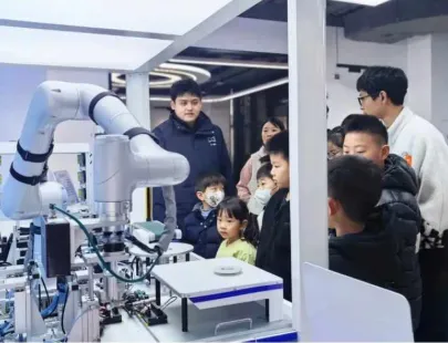 走进AI科普基地,与智能机器人互动,通过趣味小课堂,让孩子理解AI背后的逻辑。