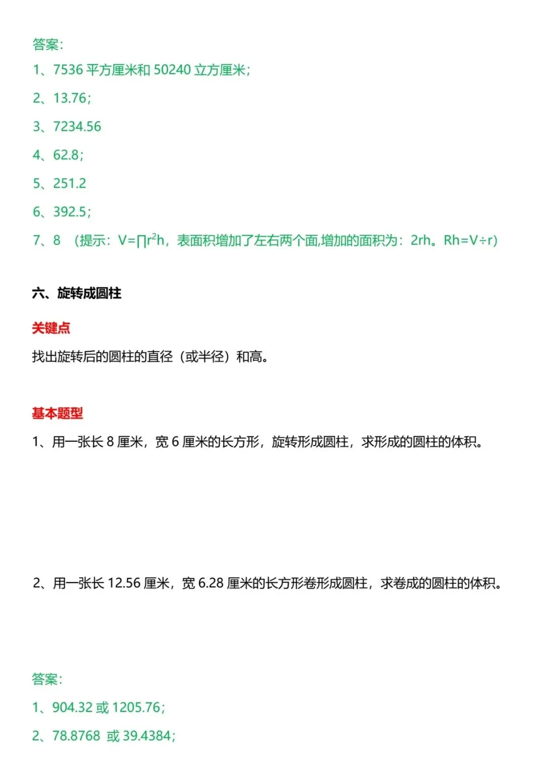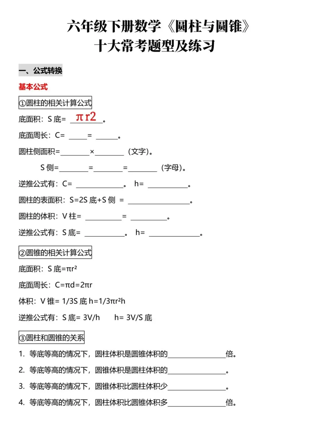 🌟2026春六年级下册通用版数学《圆柱与圆锥|10大常考题型》专项练习,含答案,电子版额下载打印,10大常考题型包含:公式转换题型、切割拼接问题、放入或拿出物体、高增加或减少问题、加工成圆柱、旋转成圆柱等,通过练习帮助孩子们全面掌握知识点,建立清晰的解题思路,提升数学思维的严谨性,需要的朋友抓紧领取,给孩子练起来吧💪!