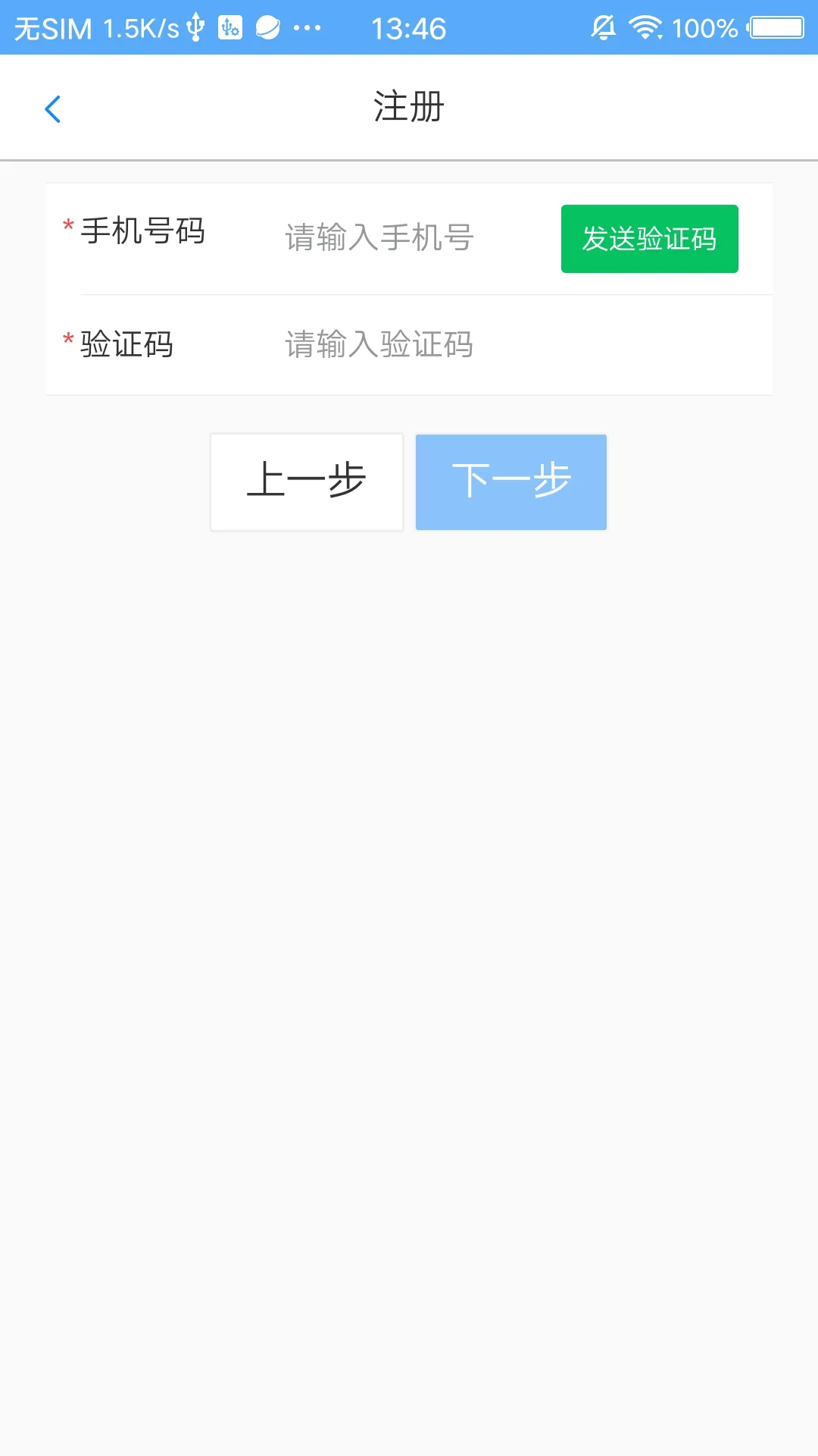 5、输入手机号码,点击获取“验证码”按钮获取验证码,输入验证码,点击进入下一步: