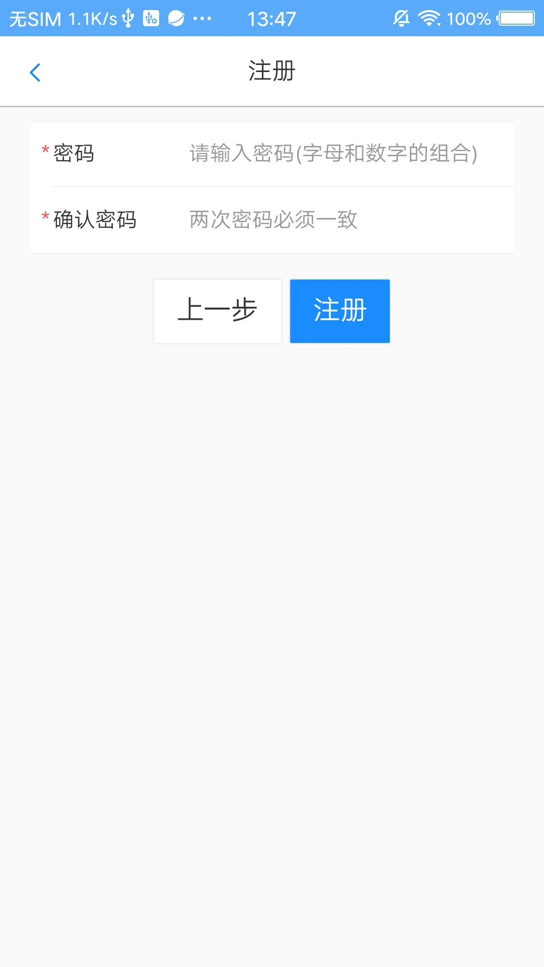 6、输入密码和确认密码,点击“注册”按钮完成注册。注意:每个手机号码和身份证号仅可以注册一个账号。