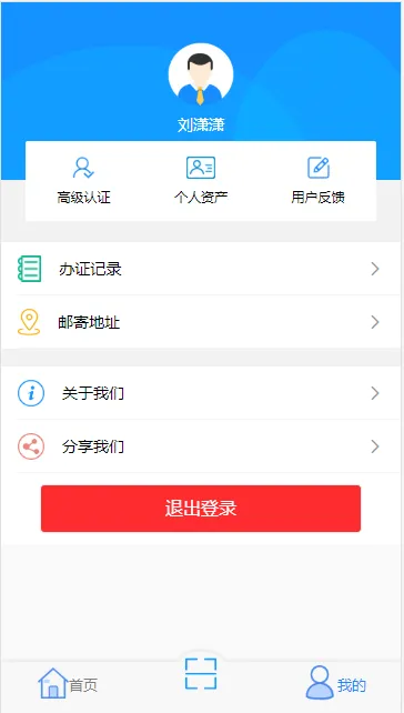 9、点击即可进入个人资产页面,此页面展示个人证照和法人证号,如果平台拥有相关证照信息,则图标为蓝色否则为灰色。如下图: