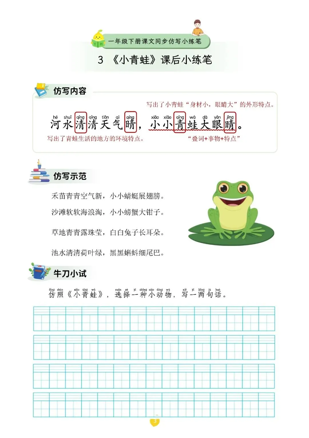大家好,我是青禾!~今日分享6春一年级(下)语文 课文仿写小练笔,电子版可打印。期中考试临近,需要的家长或老师可以领取打印出来,让孩子测一测!~