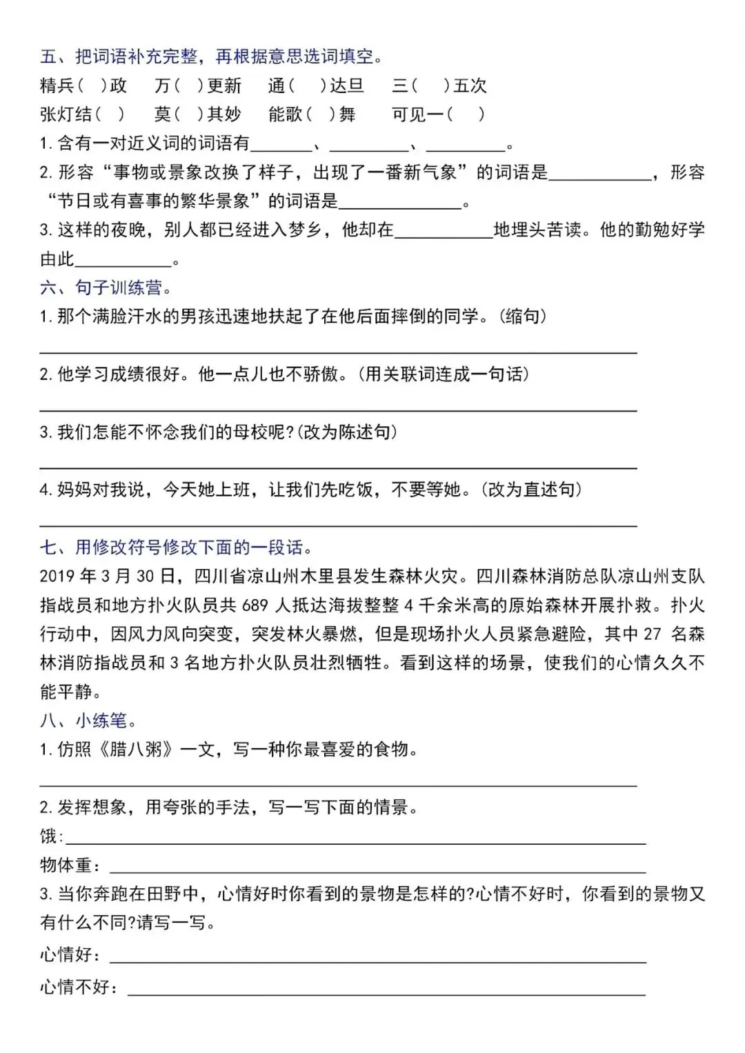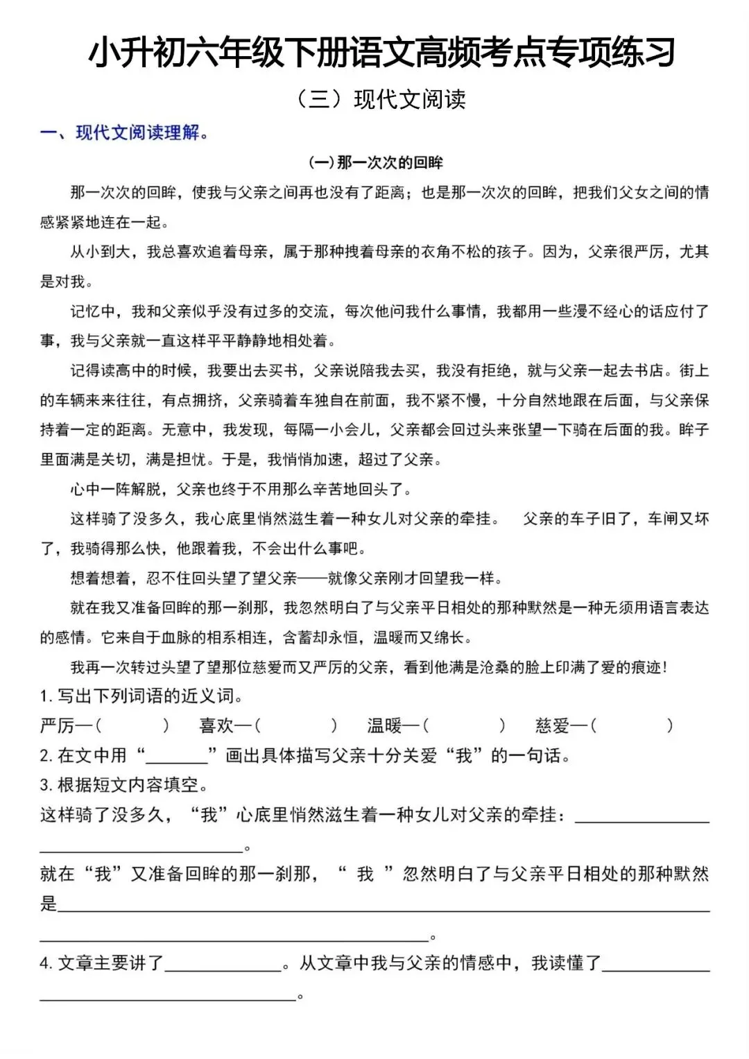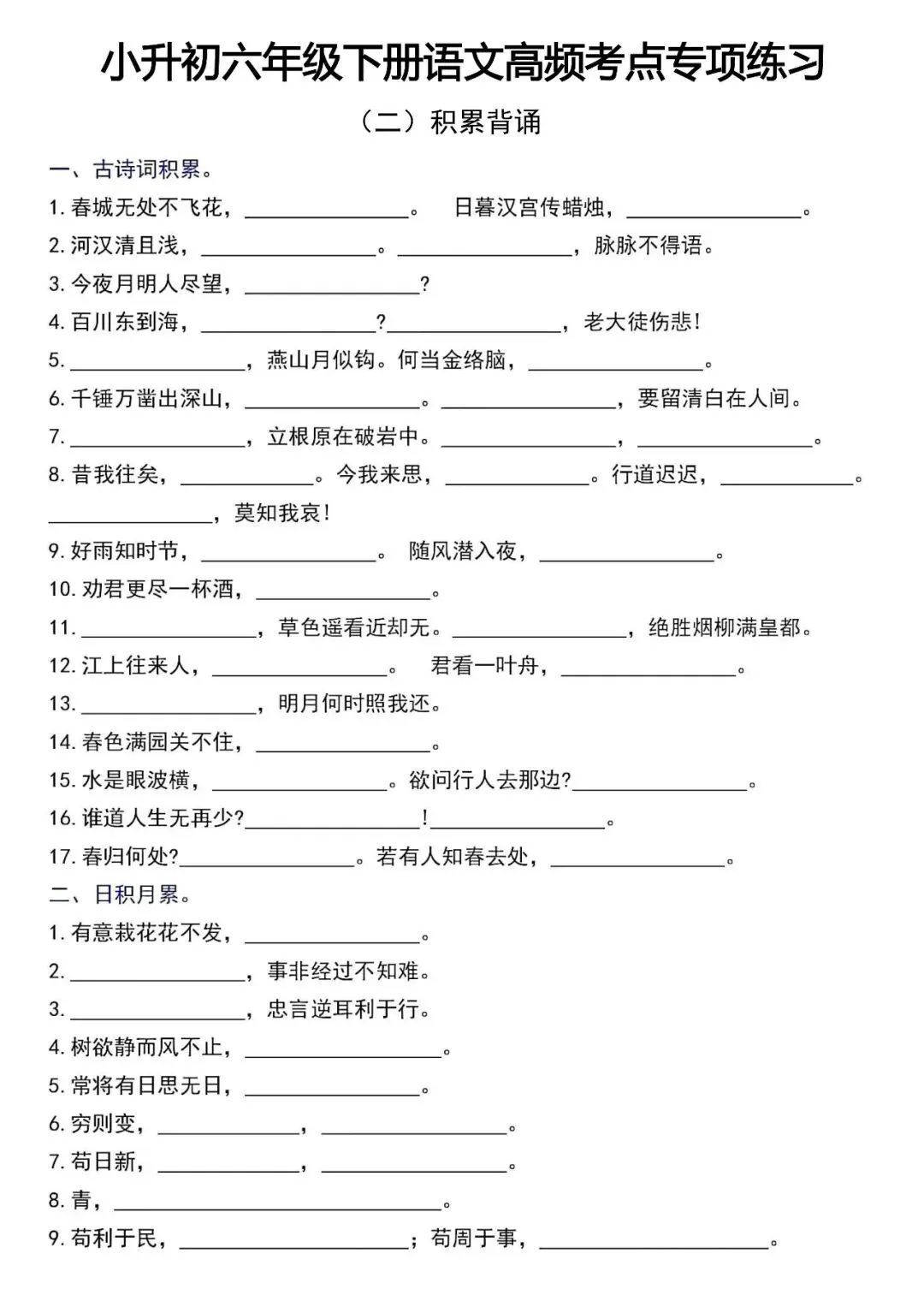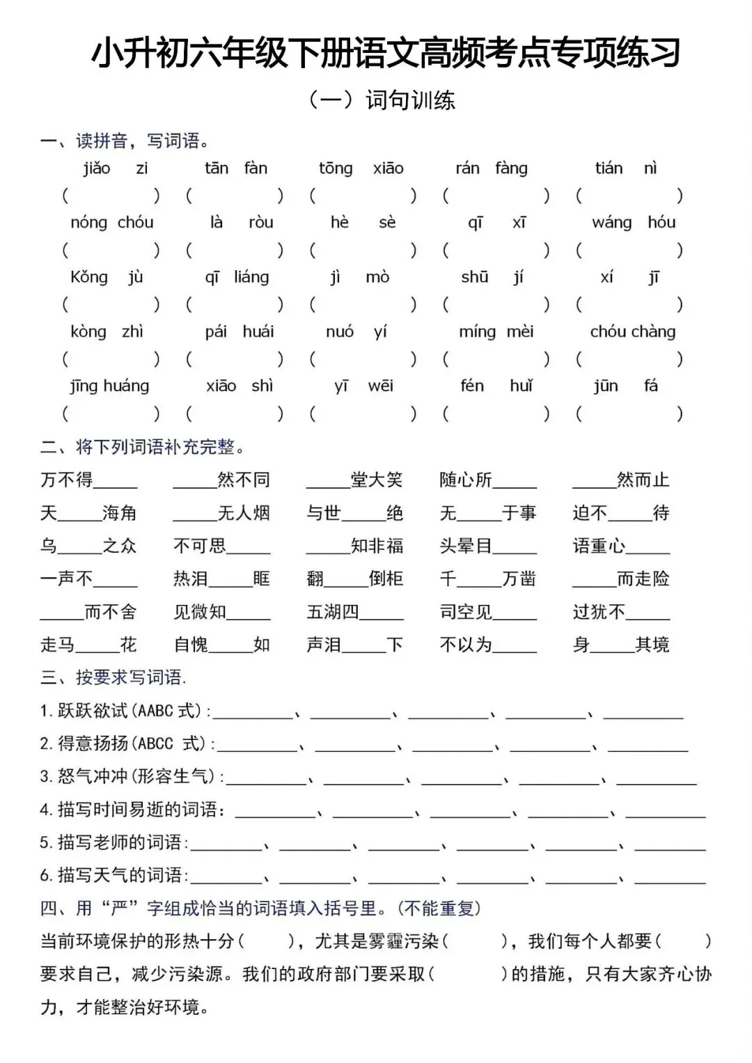小升初六年级下册语文高频考点专项练习(电子版可打印)