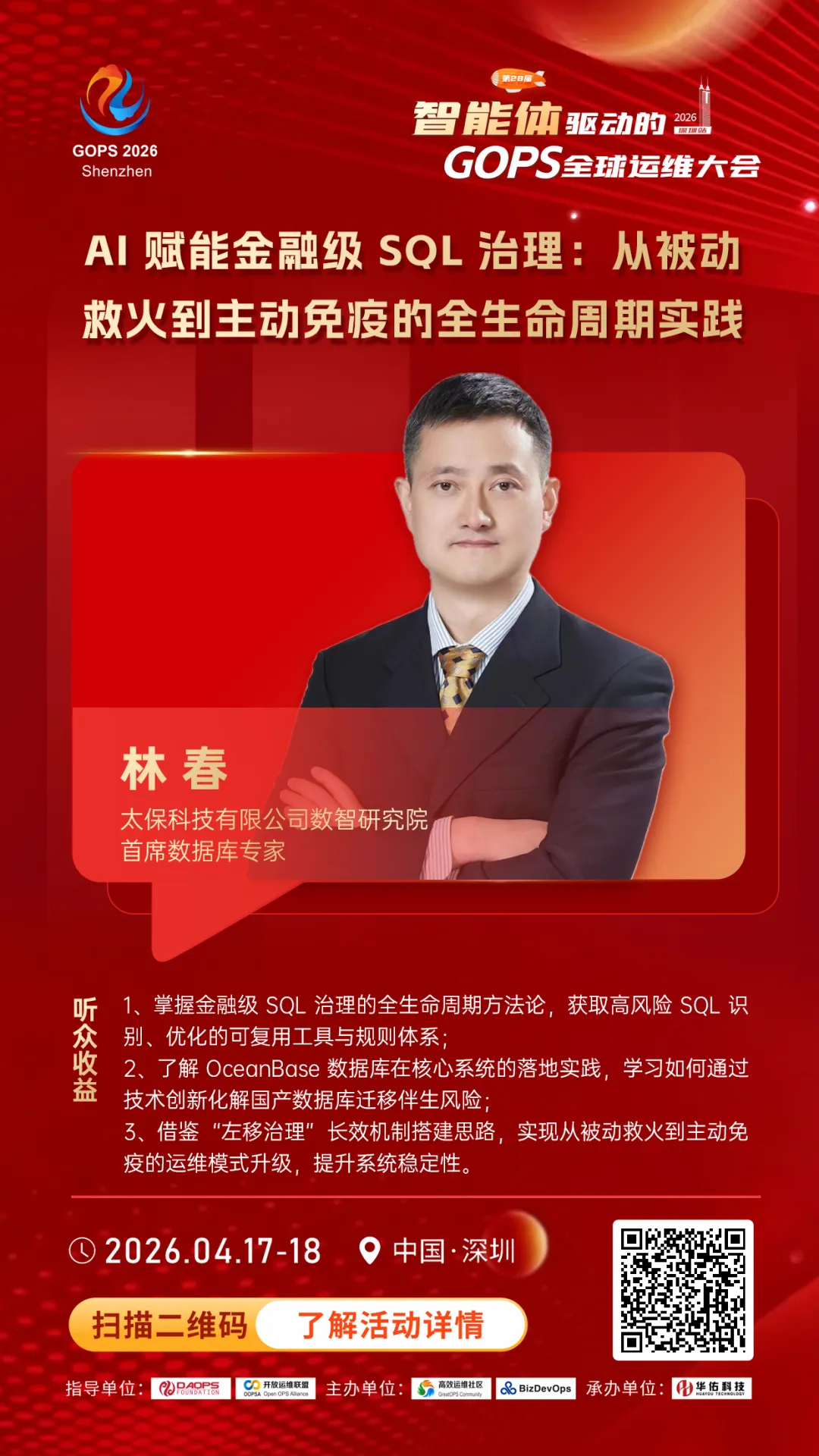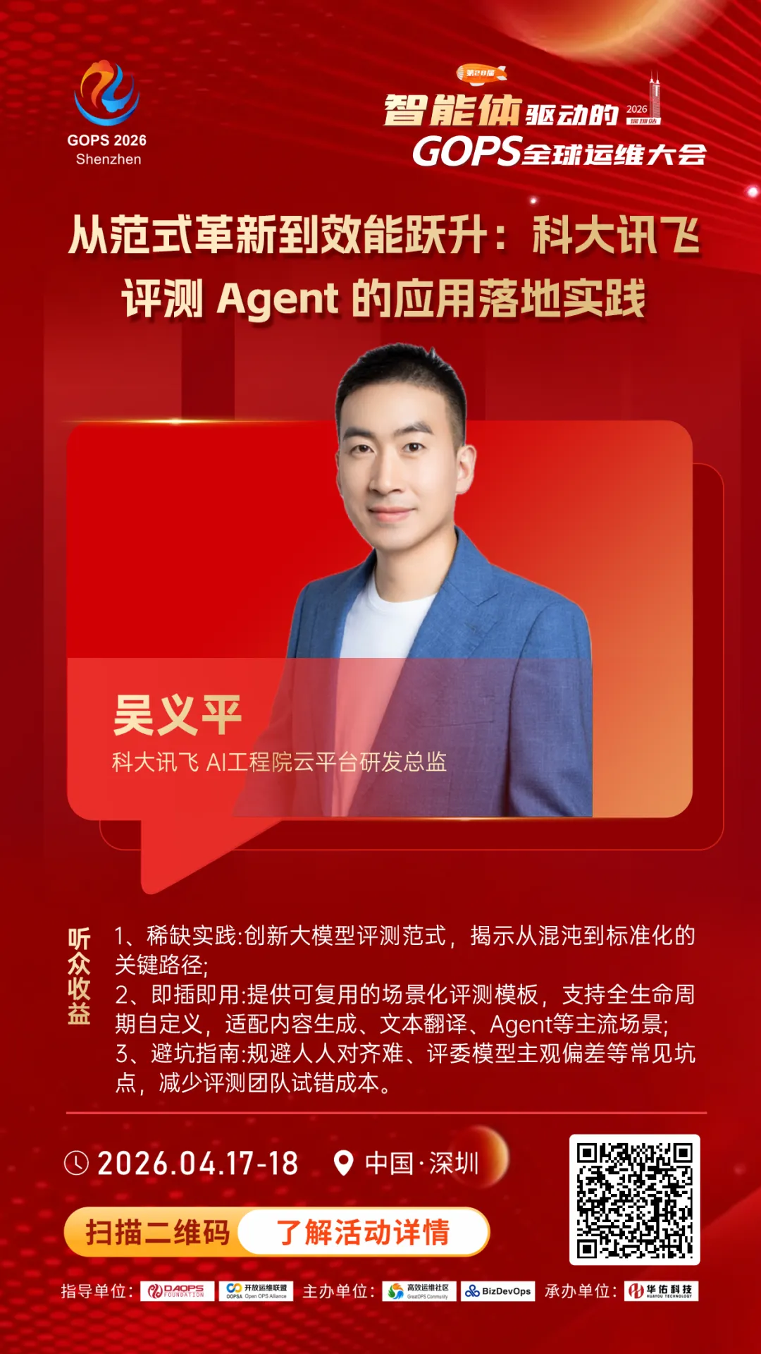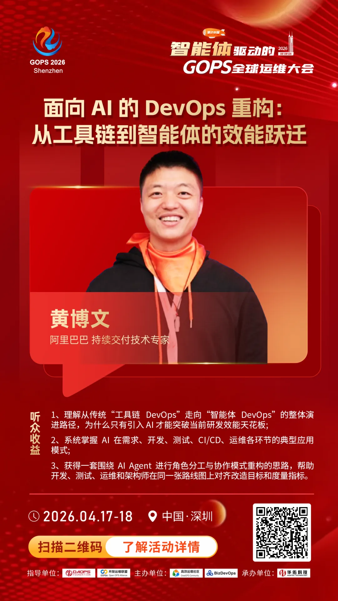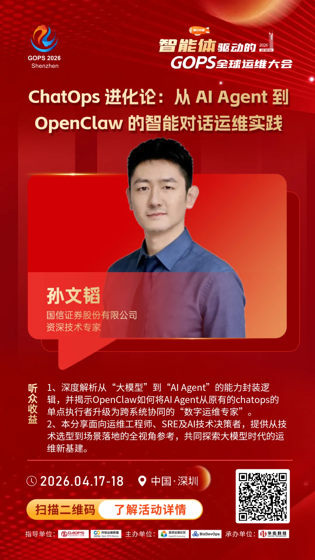 👉想了解“龙虾”在运维领域实践,助力企业运维能力提升?4月17日-18日,腾讯、百度、阿里、字节等一线名企专家齐聚!智能体驱动的 GOPS 2026・深圳站,不可错过!