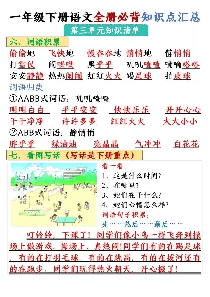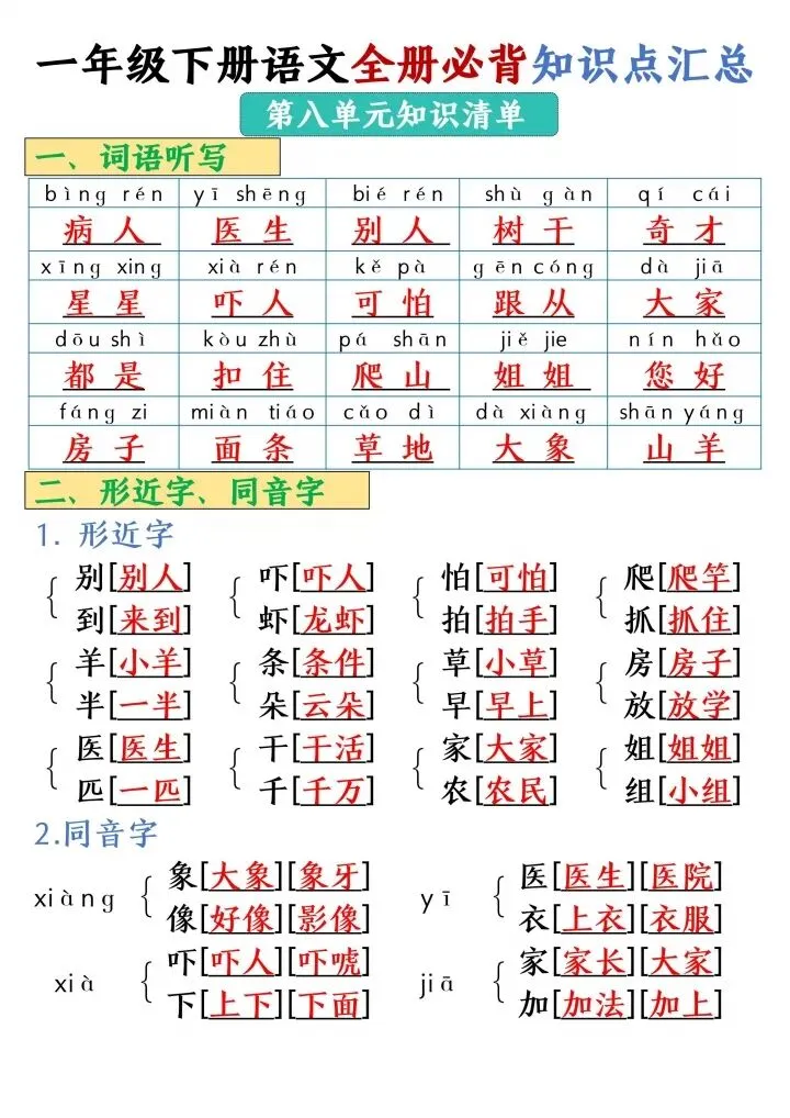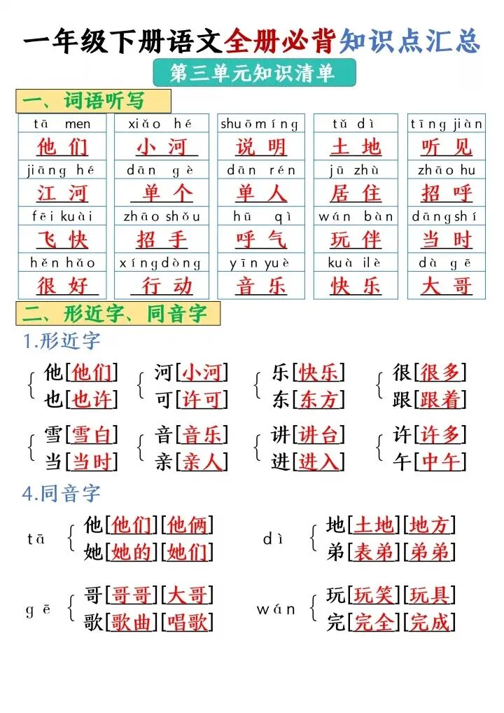 今日份分享一年级下册语文全册必背知识点汇总(完整电子版可打印)!这份资料已经整理成可打印版本,方便孩子随时翻看学习,建议家长先收藏,再转发给身边有需要的家庭,一起帮助孩子高效学习~