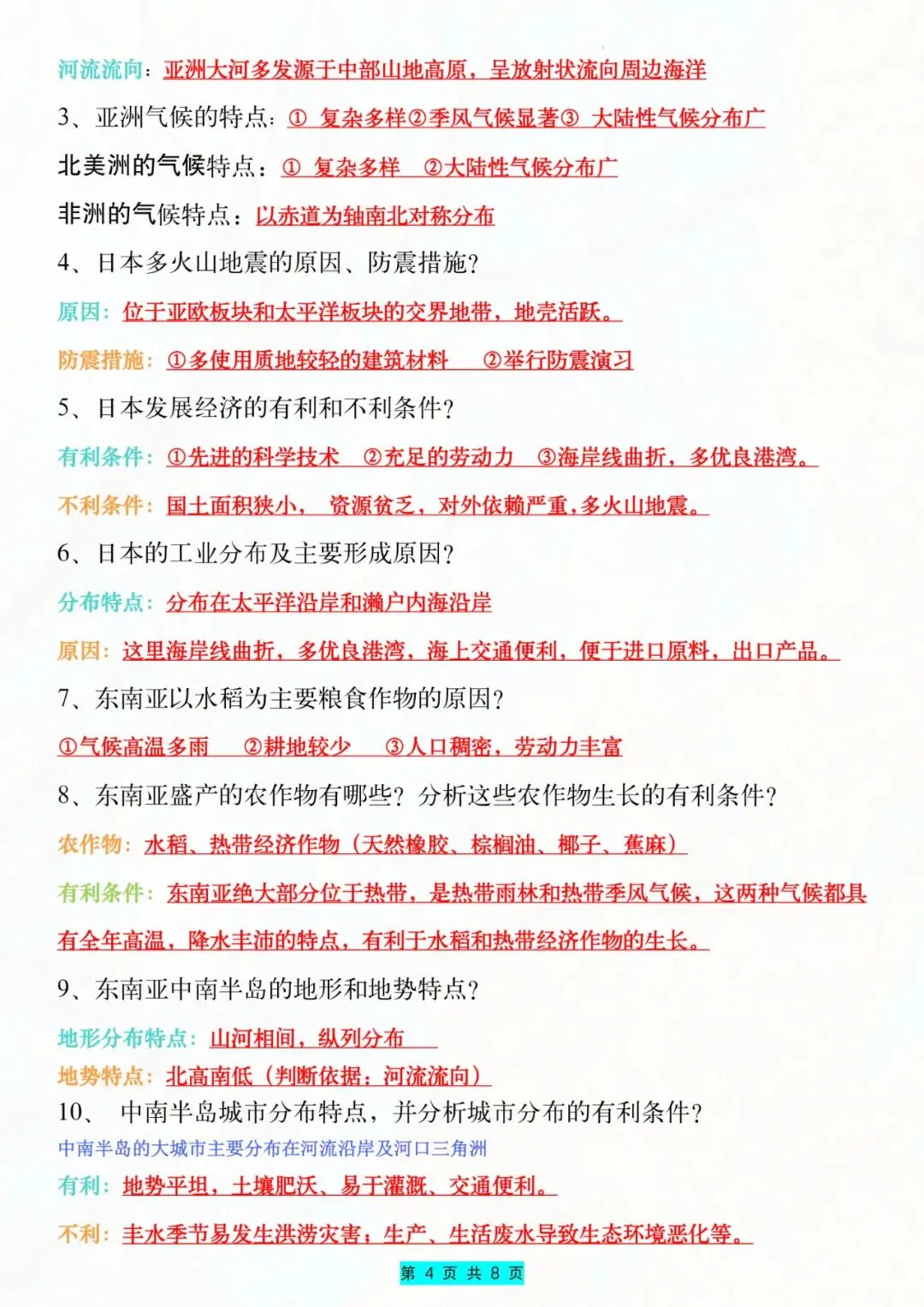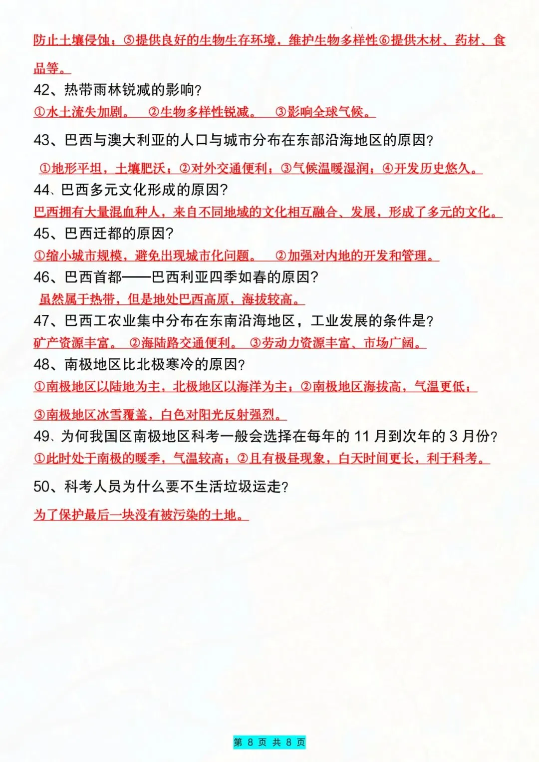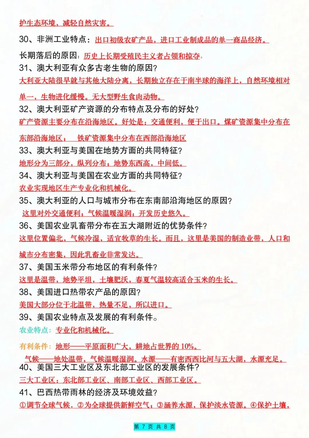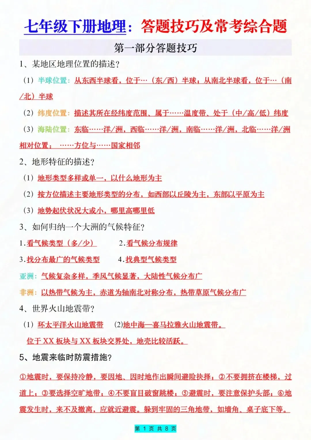 今天老师给大家整理了:七年级下册地理常考知识点及答题技巧电子版可打印!