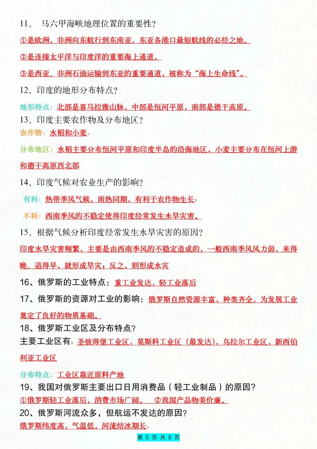 七年级下册地理常考知识点及答题技巧电子版可打印