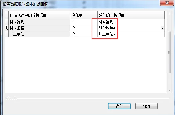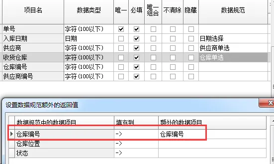 11、关闭窗口,对 “收货仓库” 进行同样的额外返回值设置。