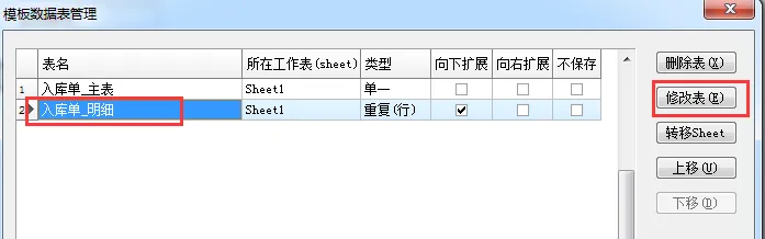 2、明细表数据项目的修改、删除操作也和主表类似,只需要在数据表管理中,选择对应的明细表进行操作即可。