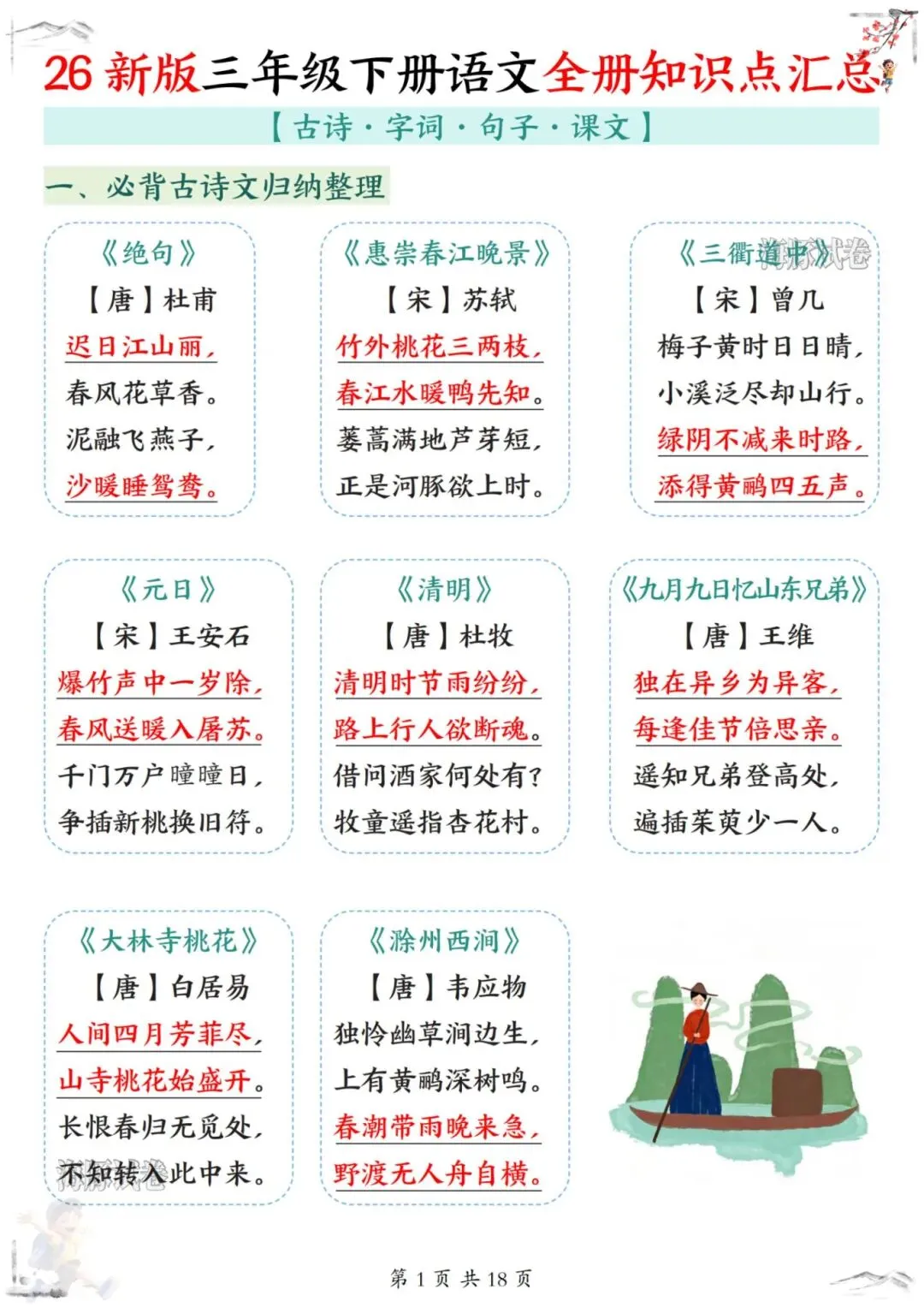 26新版三年级下册语文《全册知识点汇总》电子版可打印