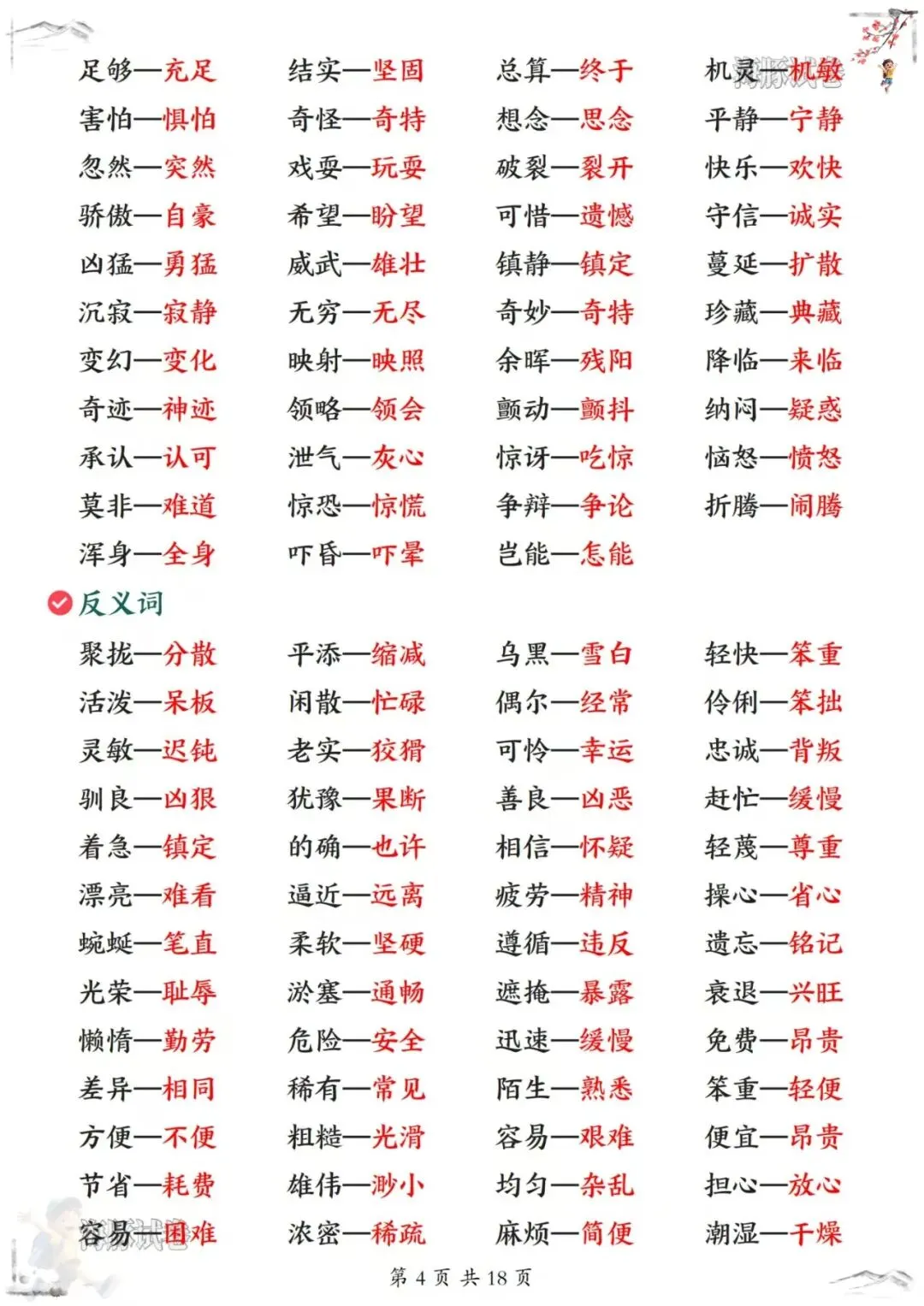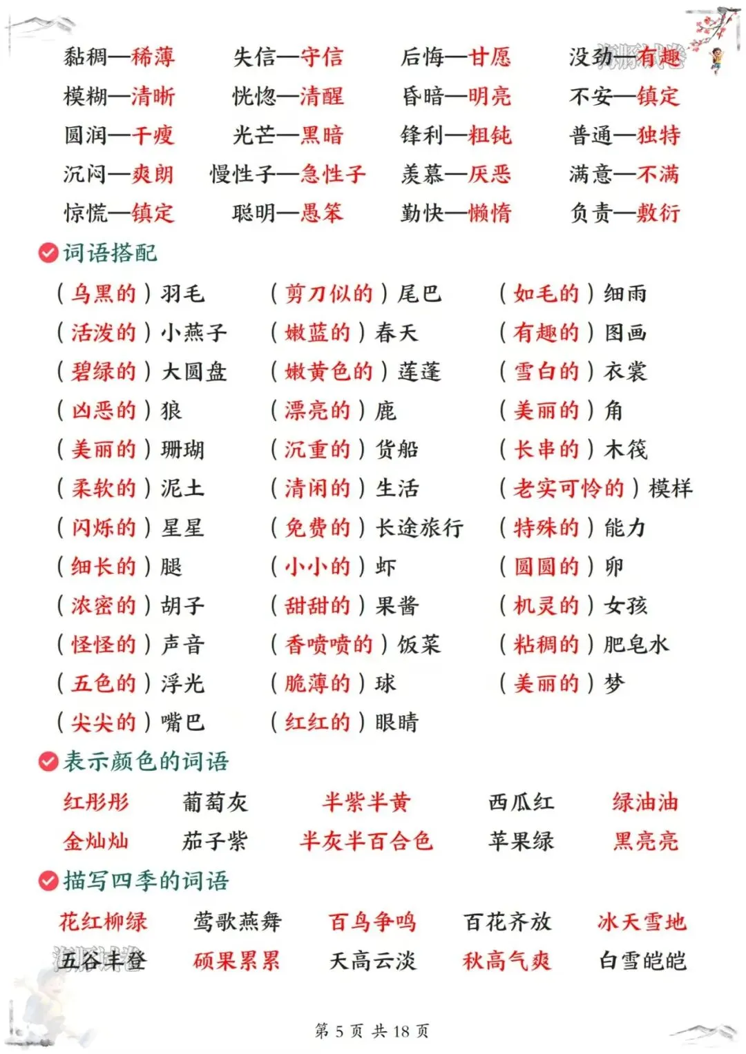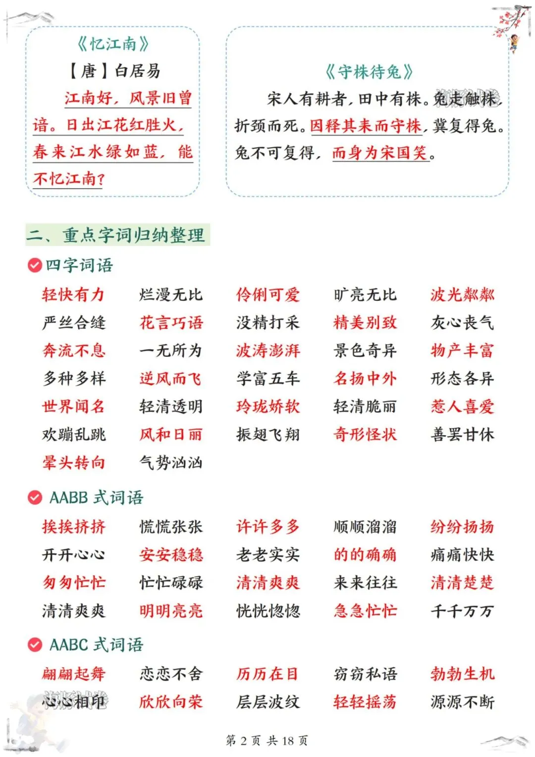 26新版三年级下册语文《全册知识点汇总》,电子版可下载可打印。 这份知识点汇总覆盖了整个下册的内容,从古诗文的原文译文注释,到重点字词的四字词语、AABB式词语、AABC式词语,再到近义词反义词、形近字同音字、成语释义和句子仿写,每个知识点都有详细的归纳整理。每天复习几页,从古诗积累到词语辨析,再到句式训练,孩子跟着做,基础知识掌握得更牢,语文素养提升得更快!家长们抓紧打印出来,让孩子寒假预习起来吧!