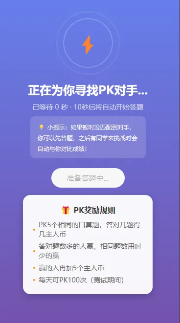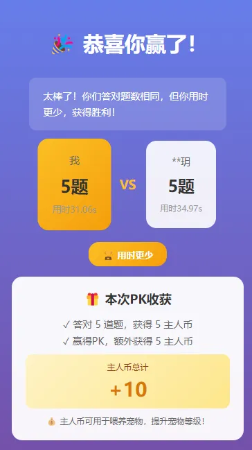 班班优化大师还创造性的增加了答题PK功能,类似学习强国的答题PK,在手机上,宠物主页最下面,有答题PK的入口,