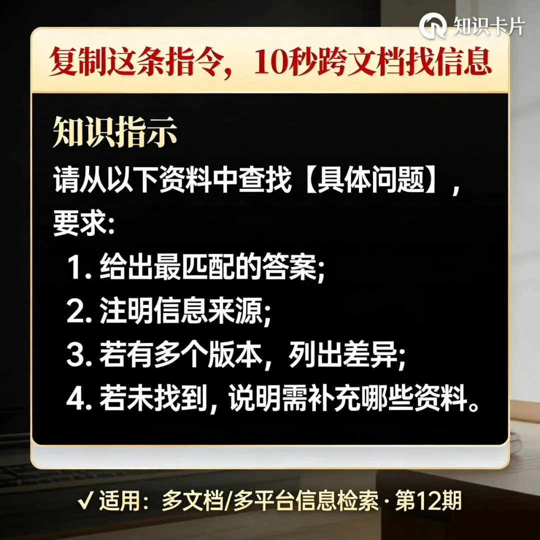 跨文档找信息像大海捞针?AI 10秒全盘搜索+关联(附指令)