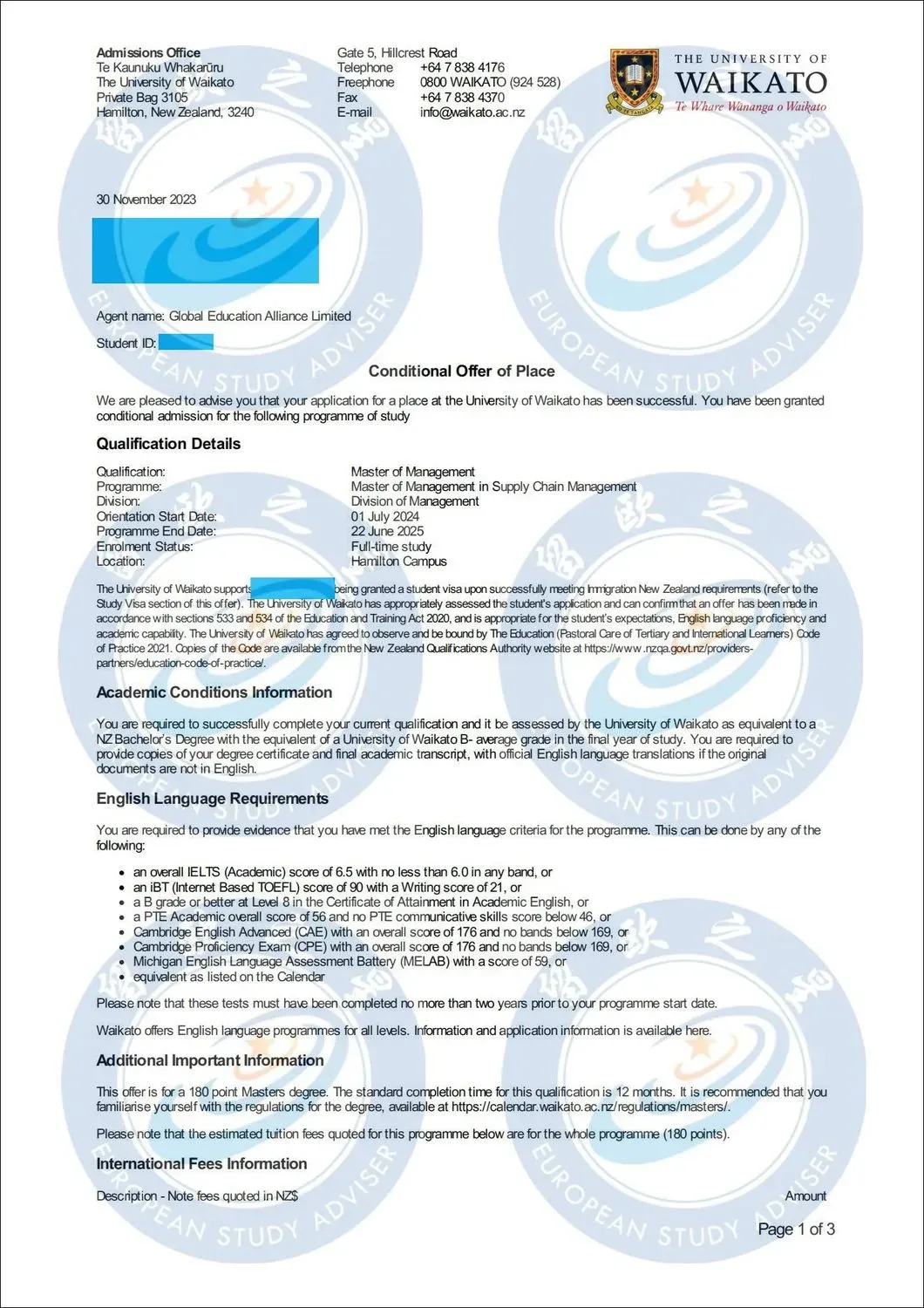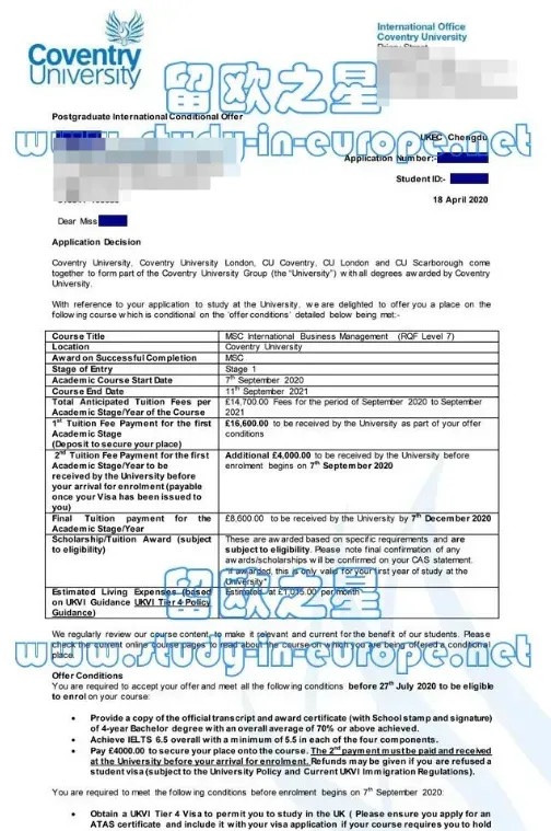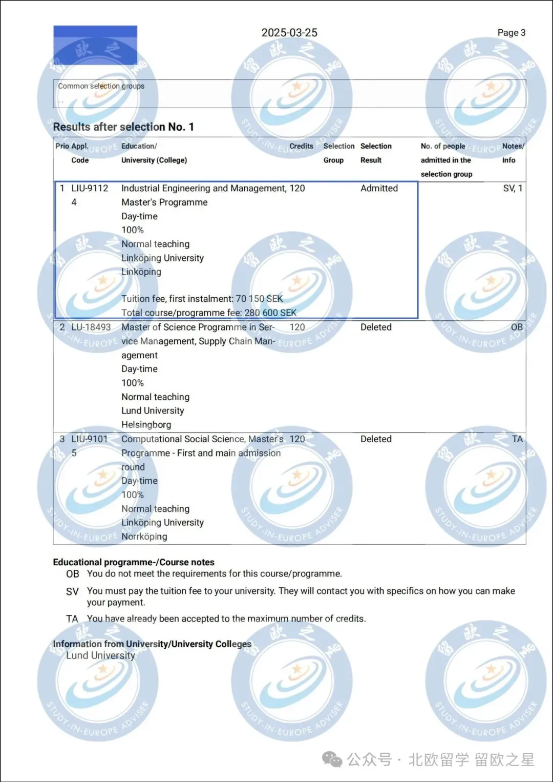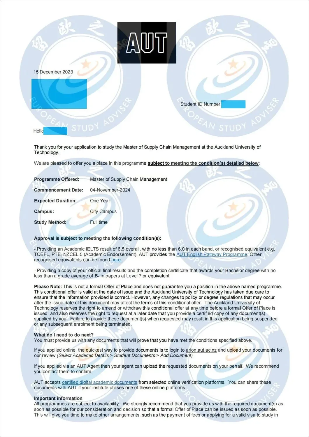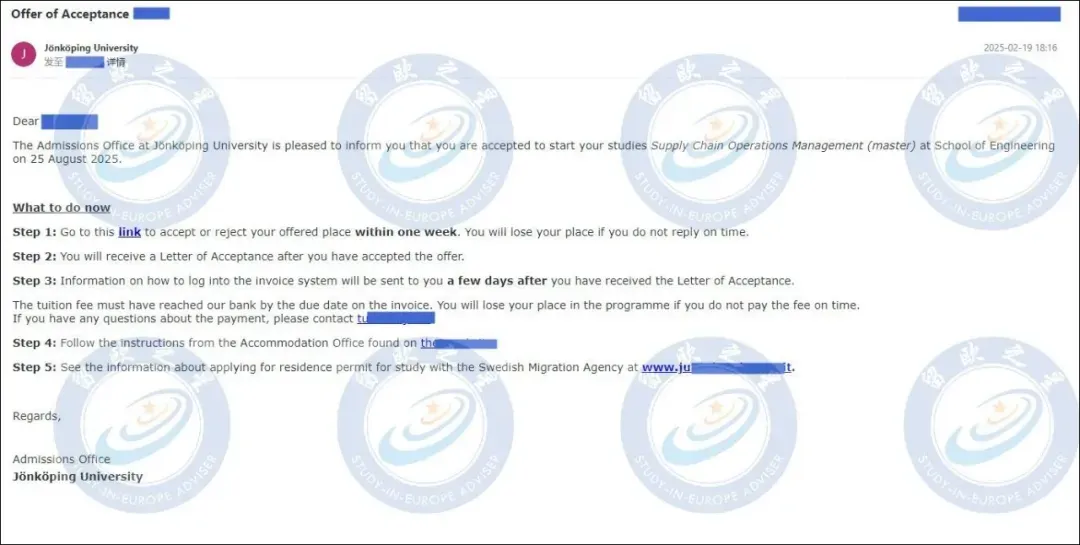 录取院校与专业:瑞典延雪平大学(供应链运营管理硕士)