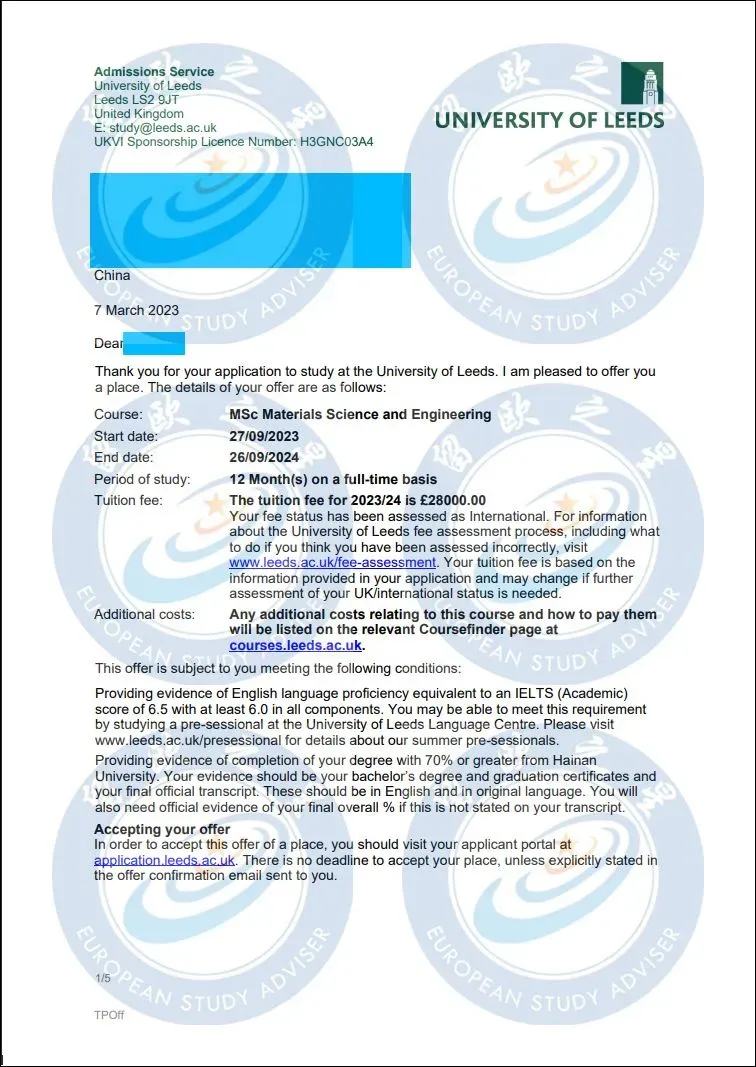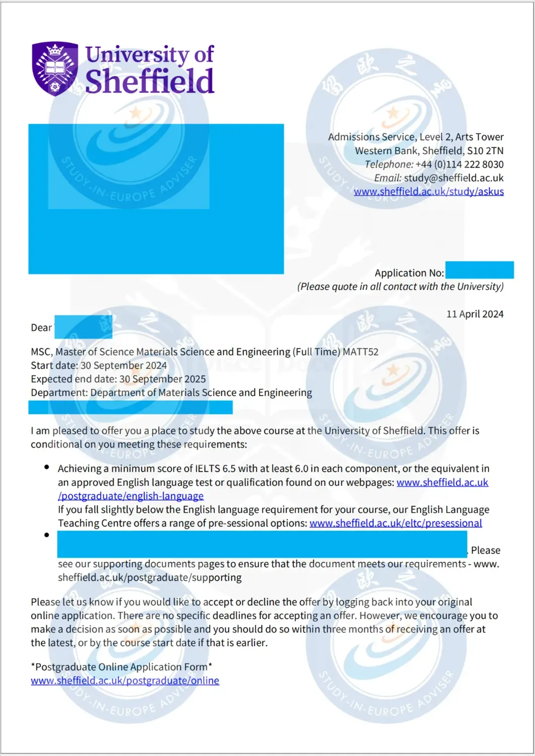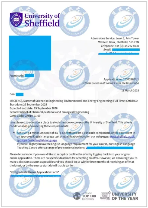 录取院校&专业:英国谢菲尔德大学(环境与能源工程硕士)