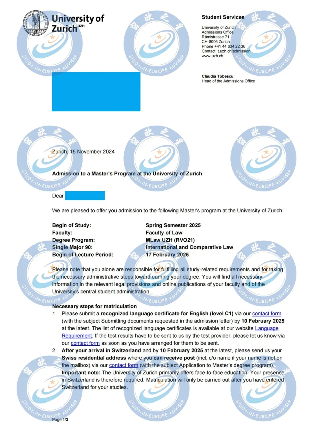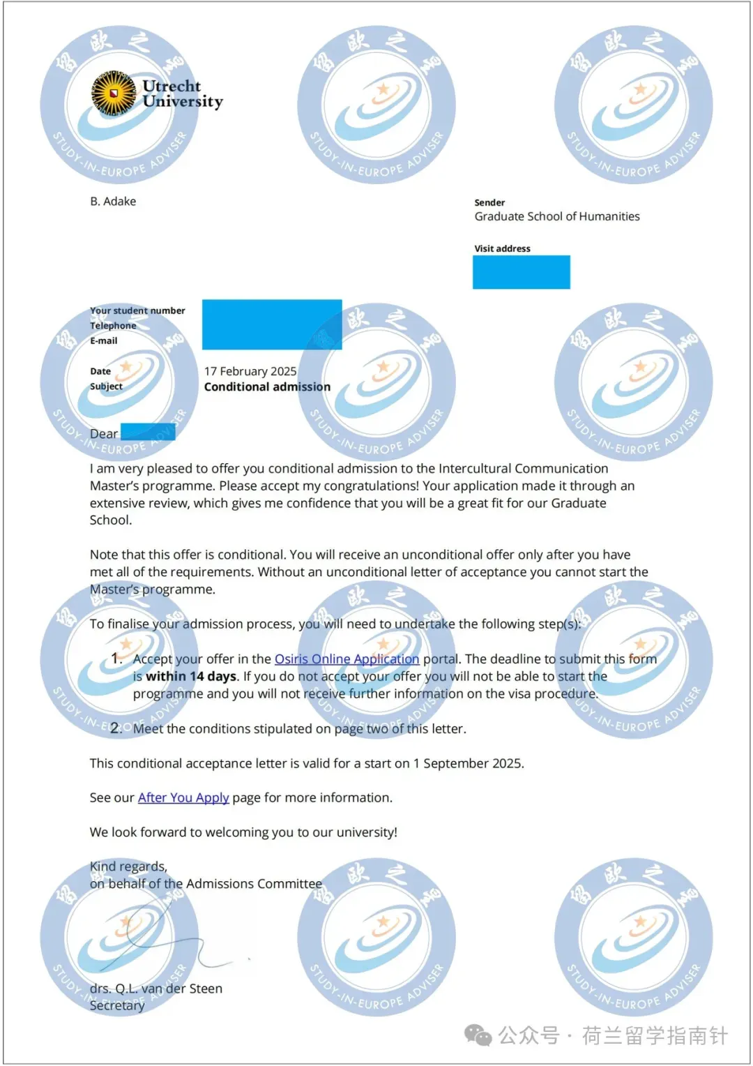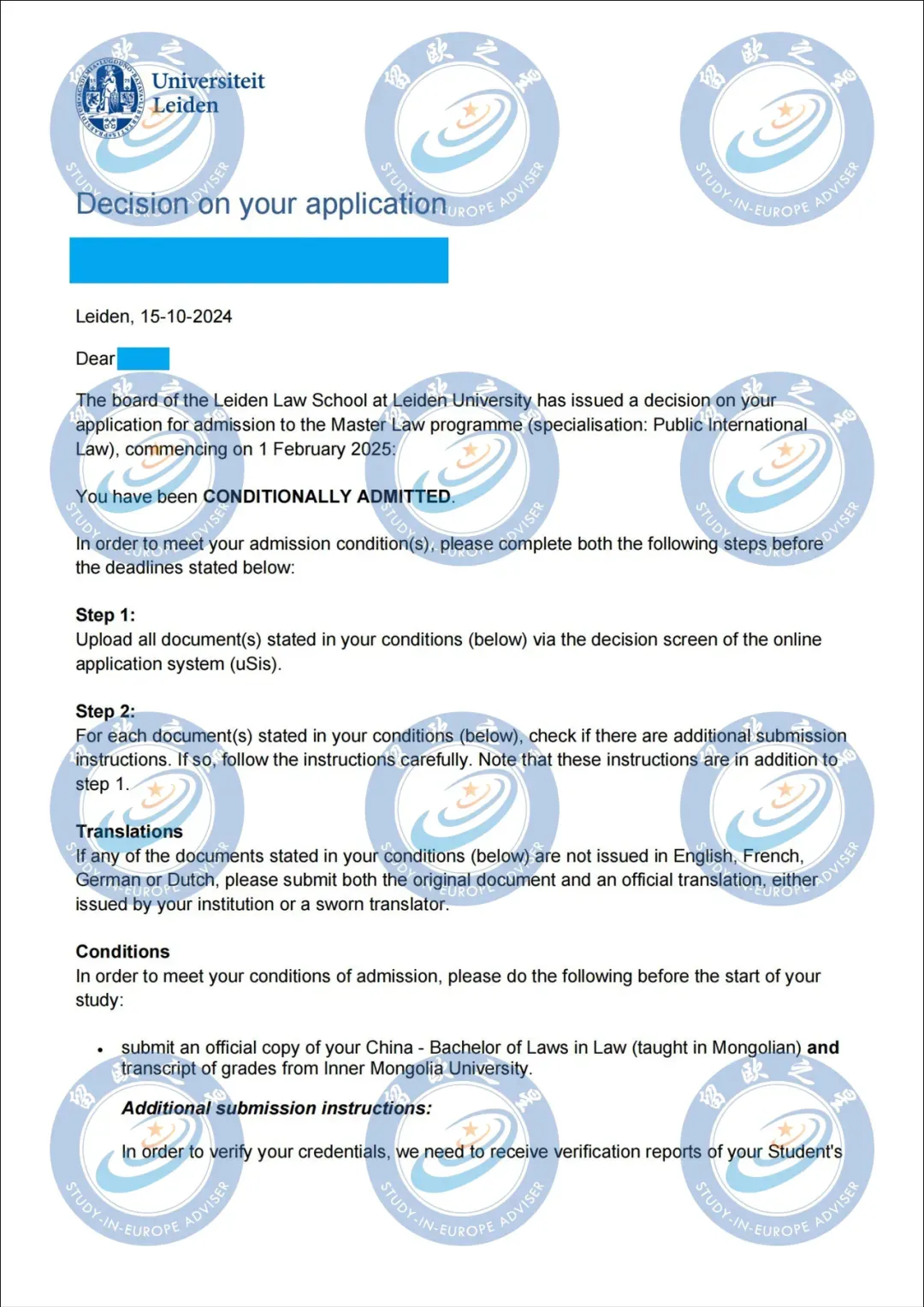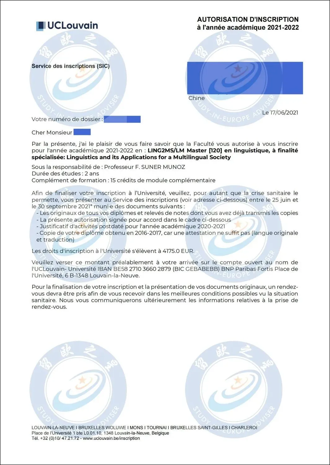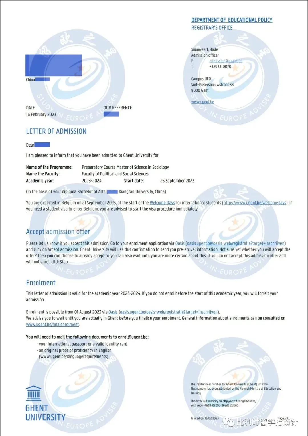 录取院校&专业:比利时根特大学 (国际商法硕士)