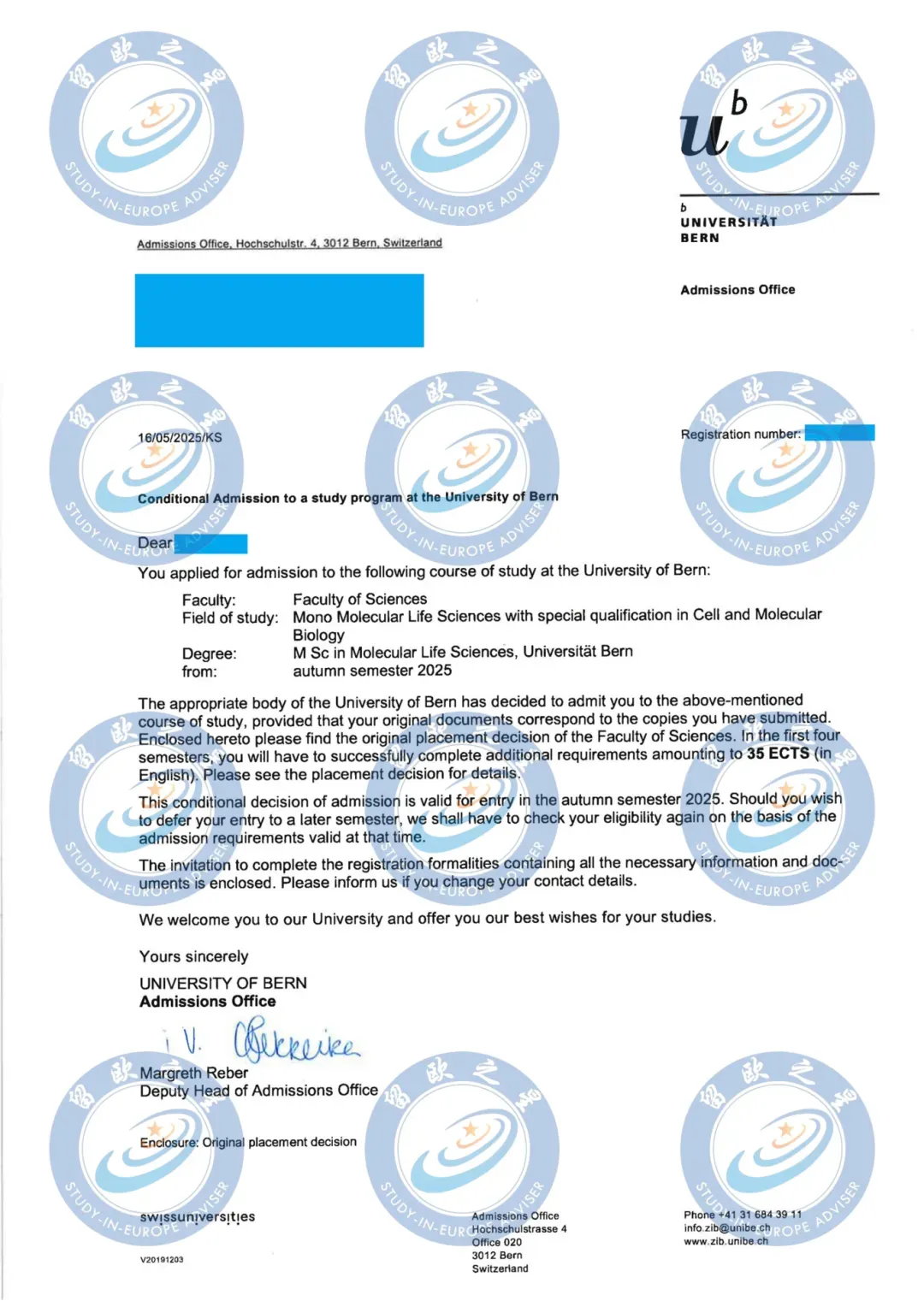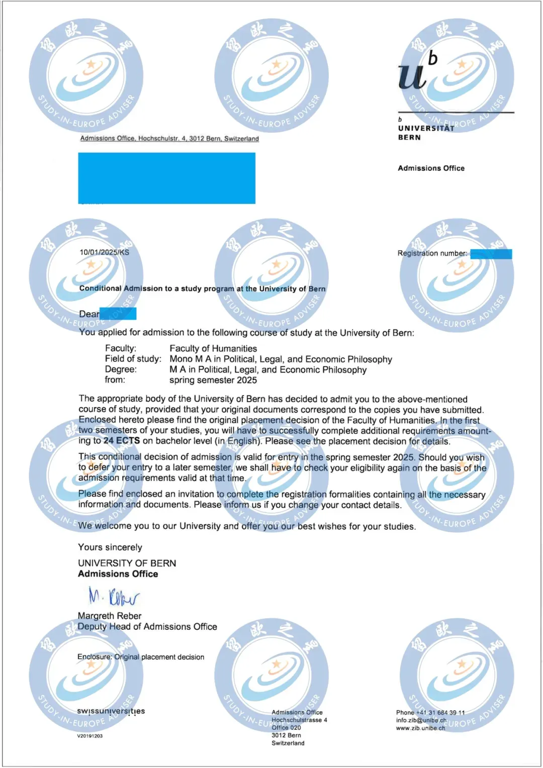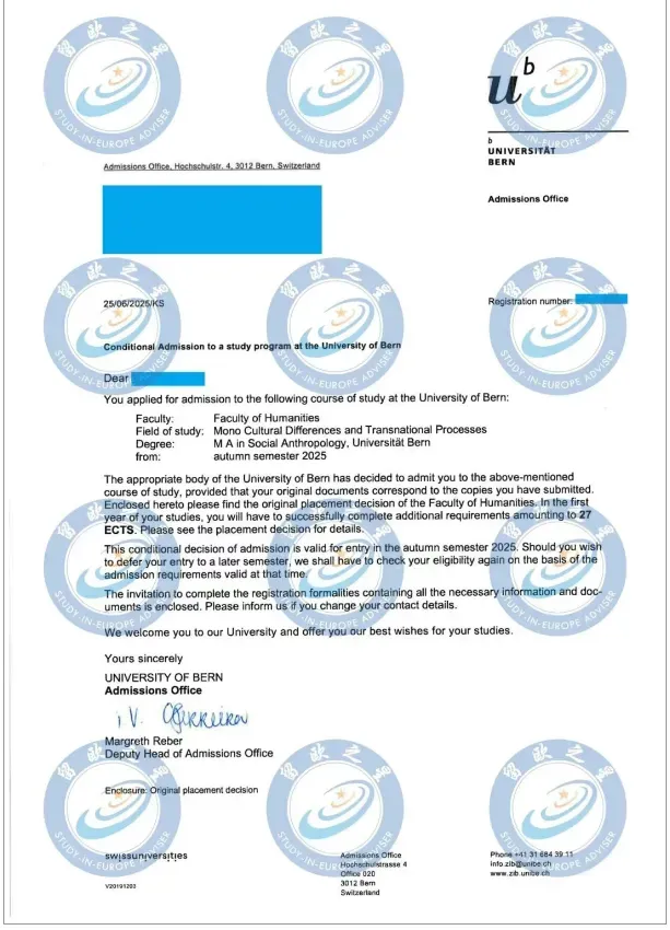 录取院校与专业:瑞士伯尔尼大学 (社会人类学硕士)