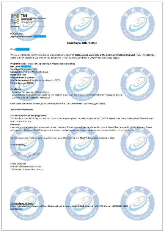 录取院校与专业:爱尔兰香农理工大学(机械工程硕士)
