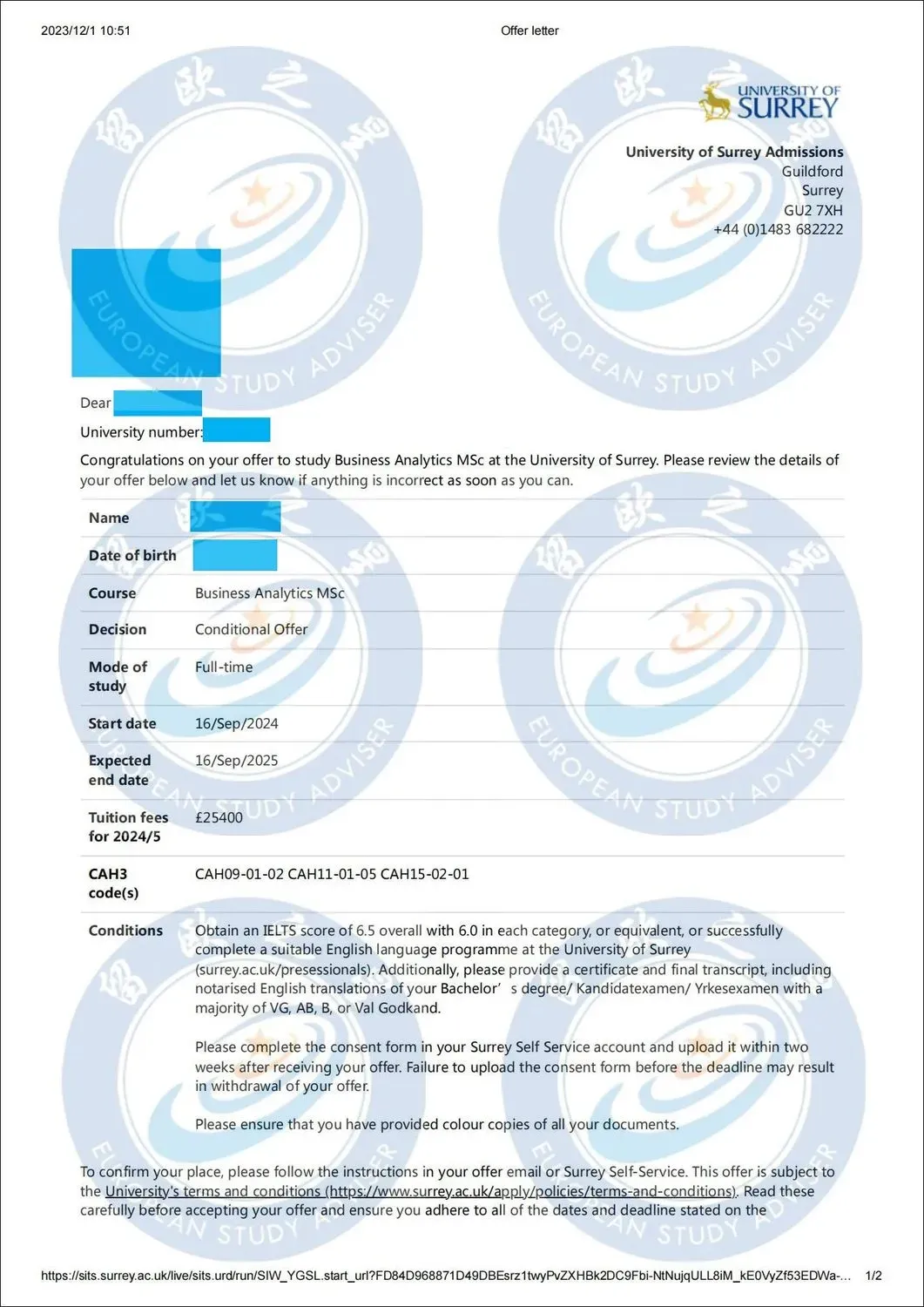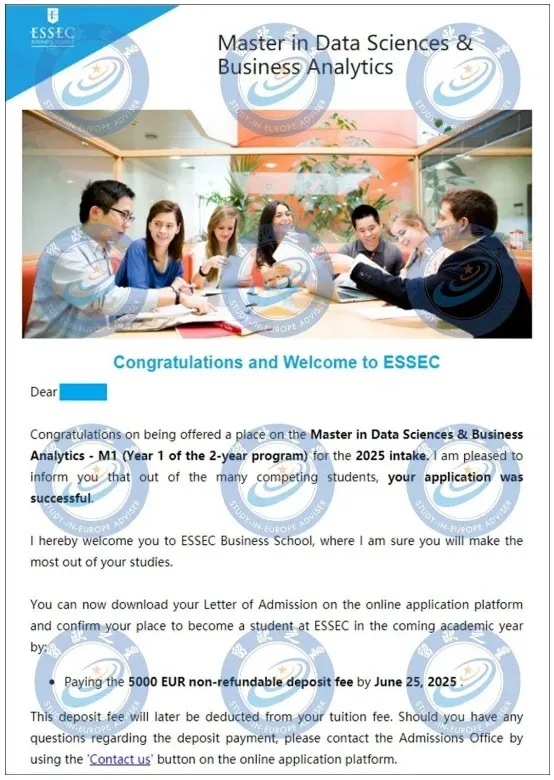 录取院校与专业:法国ESSEC商学院 (数据科学与商业分析硕士)