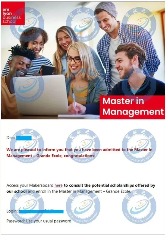 录取院校与专业:法国里昂商学院(GE管理学硕士)