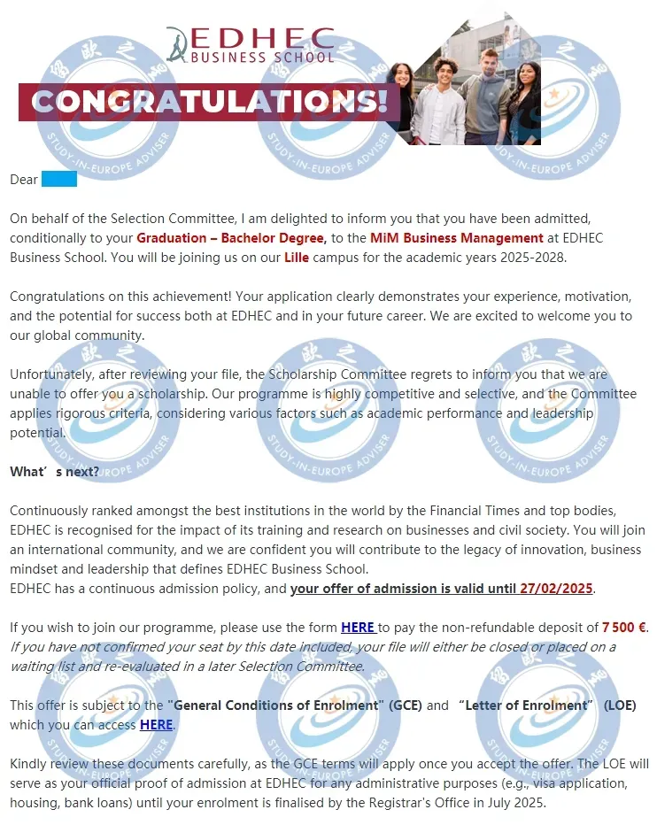 1、法国 EDHEC北方商学院 (GE项目MiM管理学硕士-商业管理方向)
