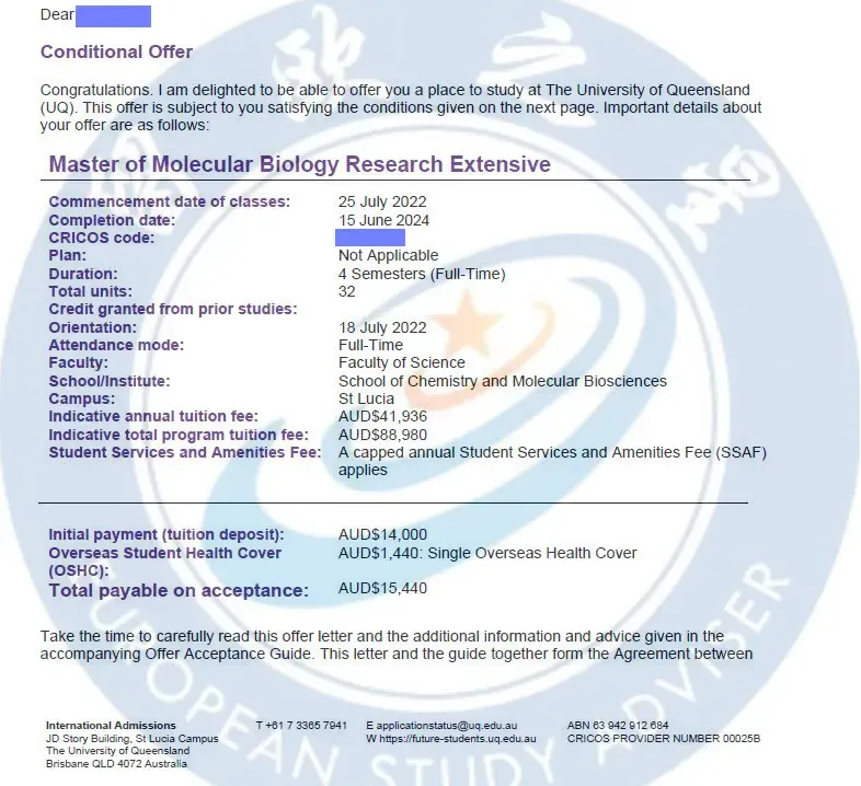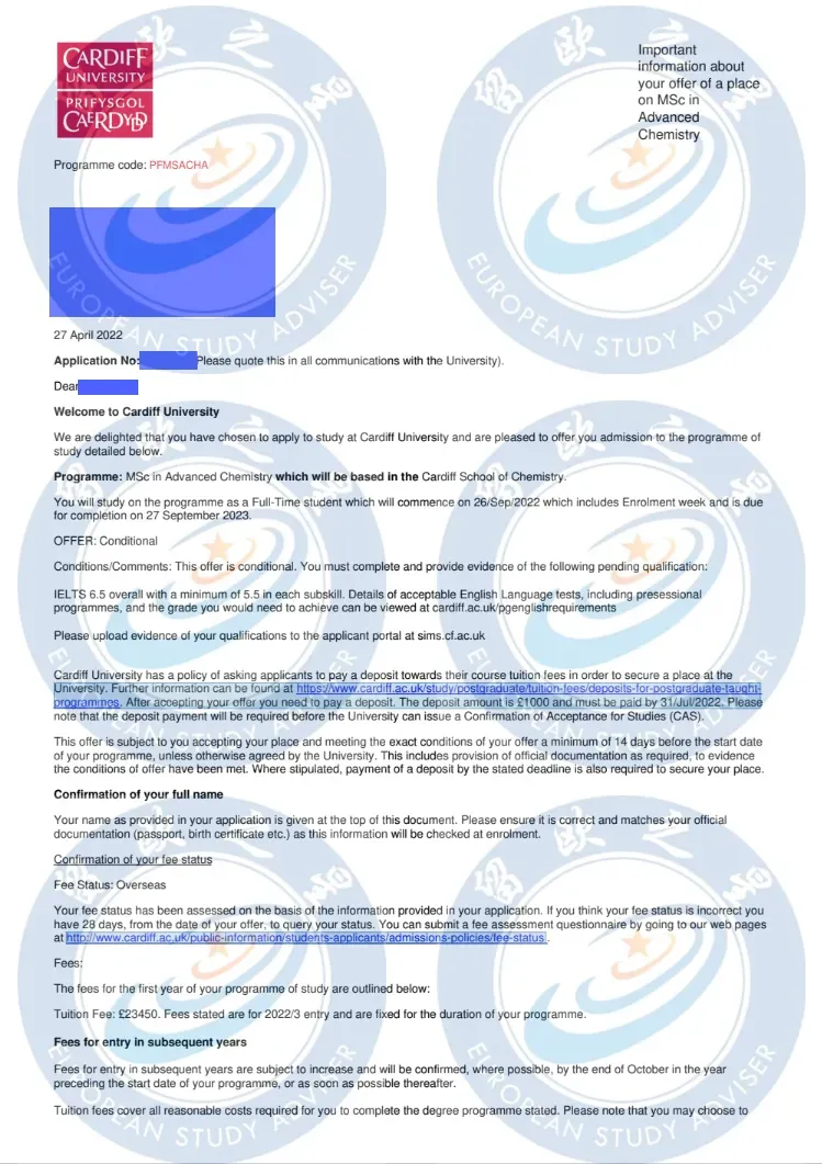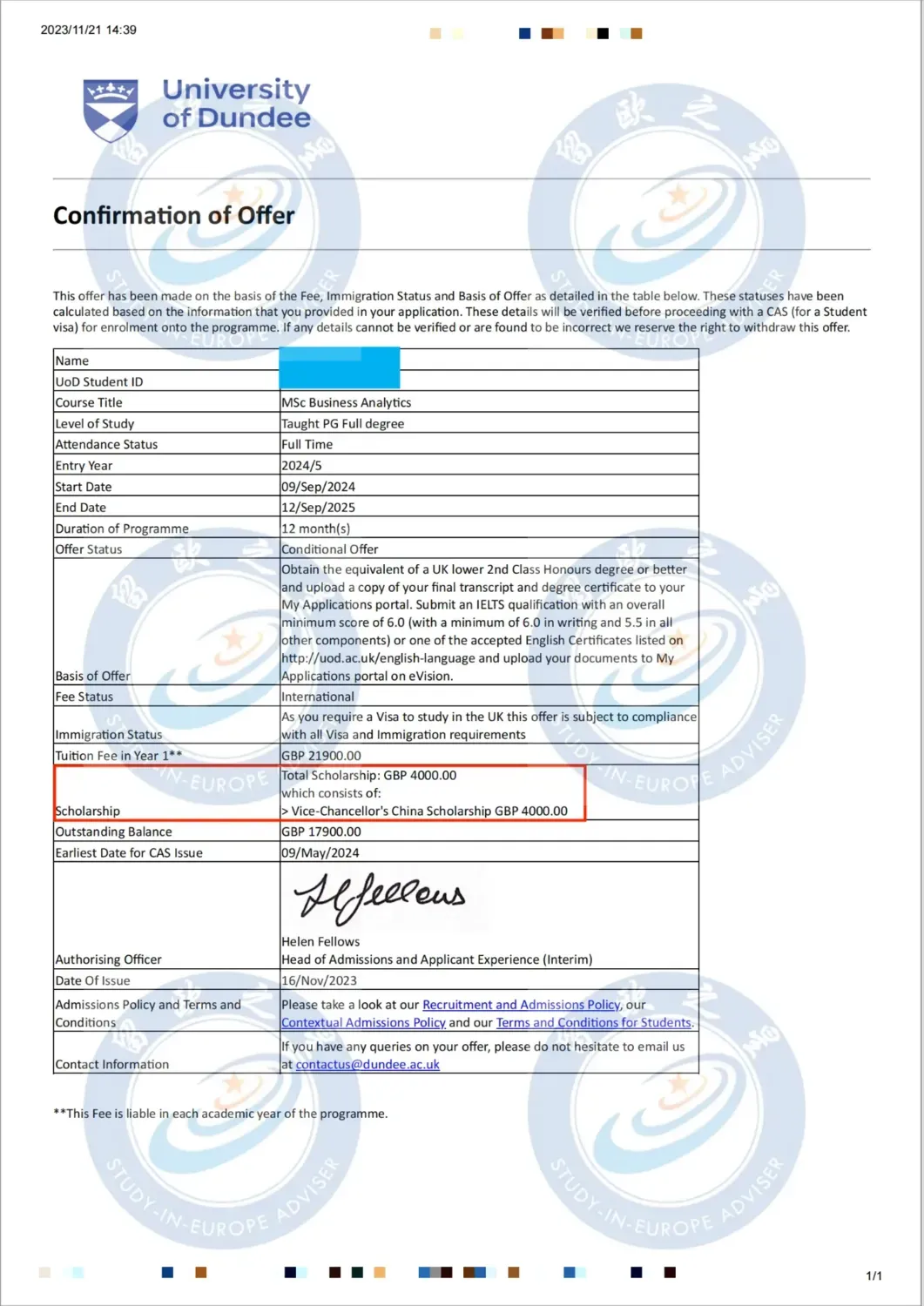 奖学金:获得40%奖学金,awarded a total scholarship of 40.00%