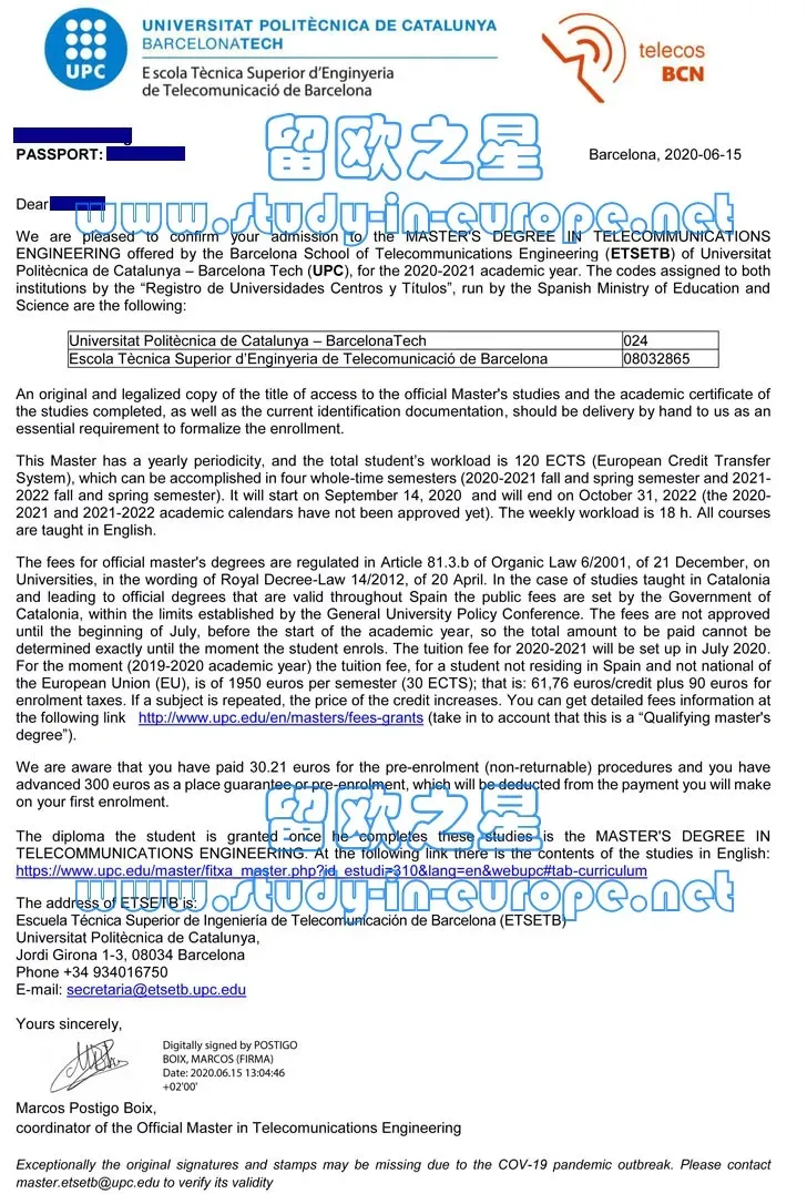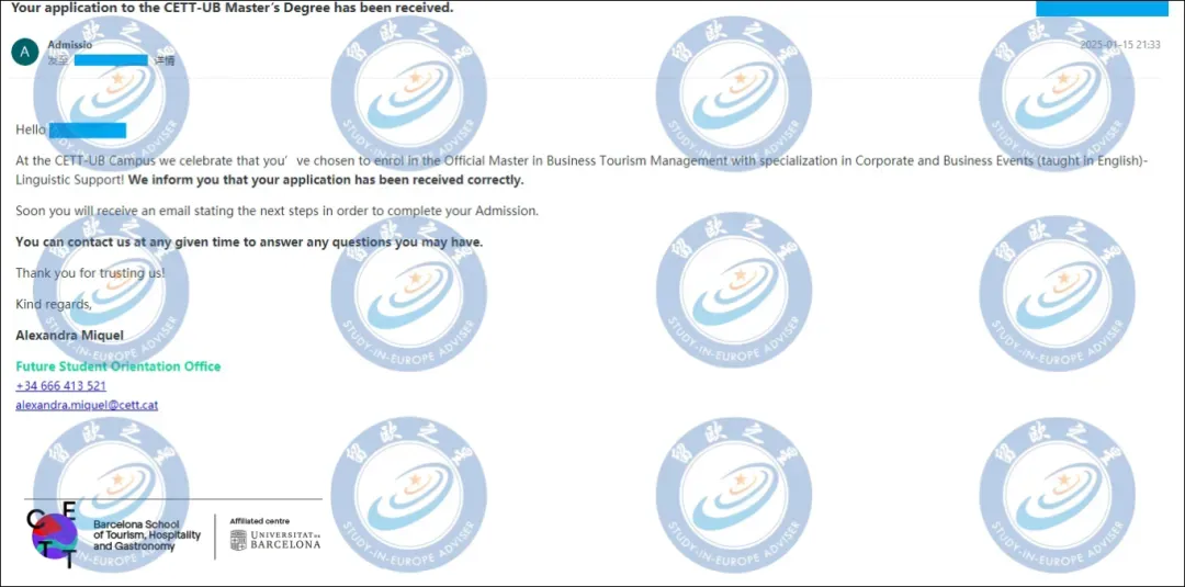 录取院校&专业: 西班牙巴塞罗那大学CETT旅游学院
