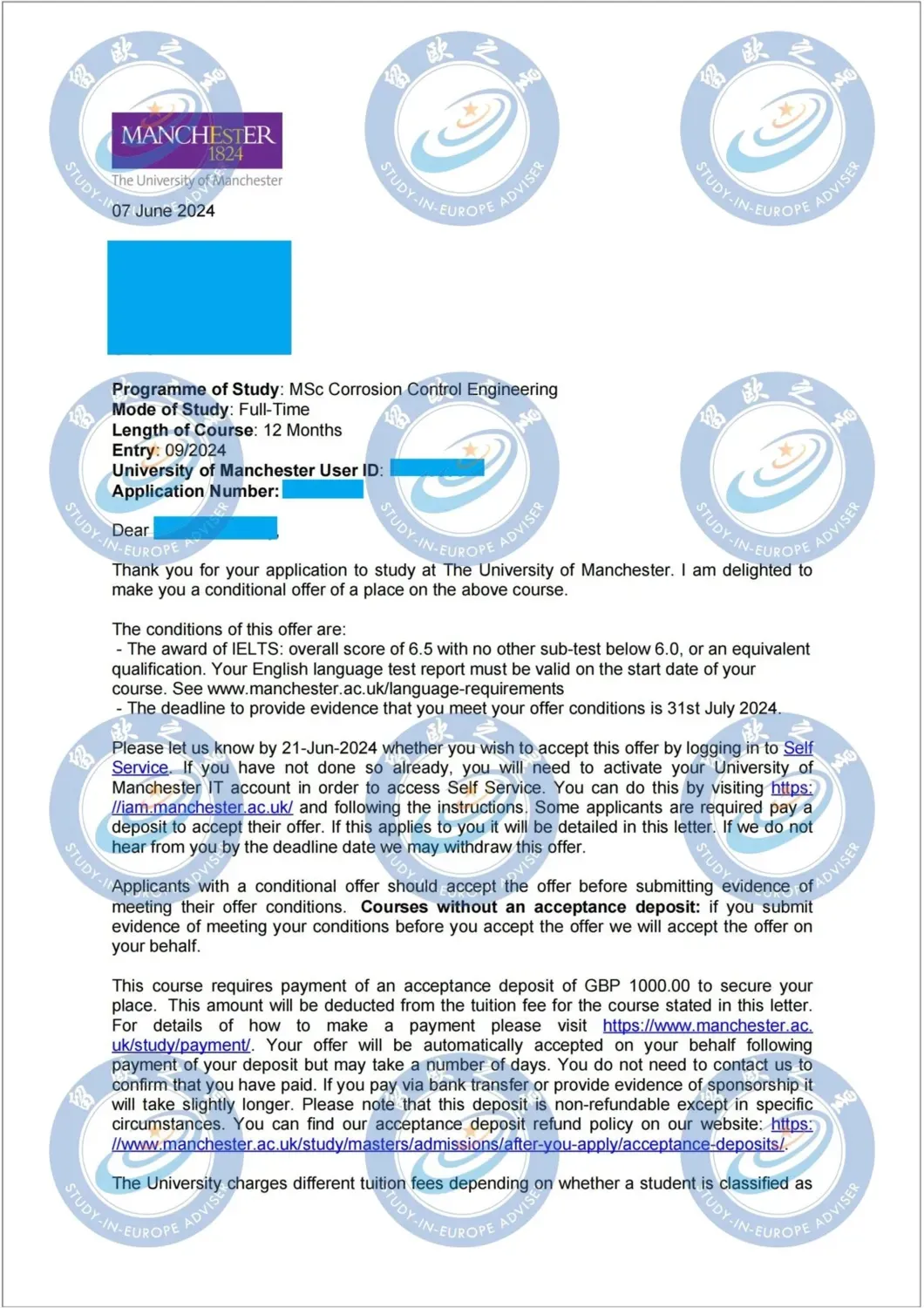 1、英国曼彻斯特大学 腐蚀控制工程硕士
