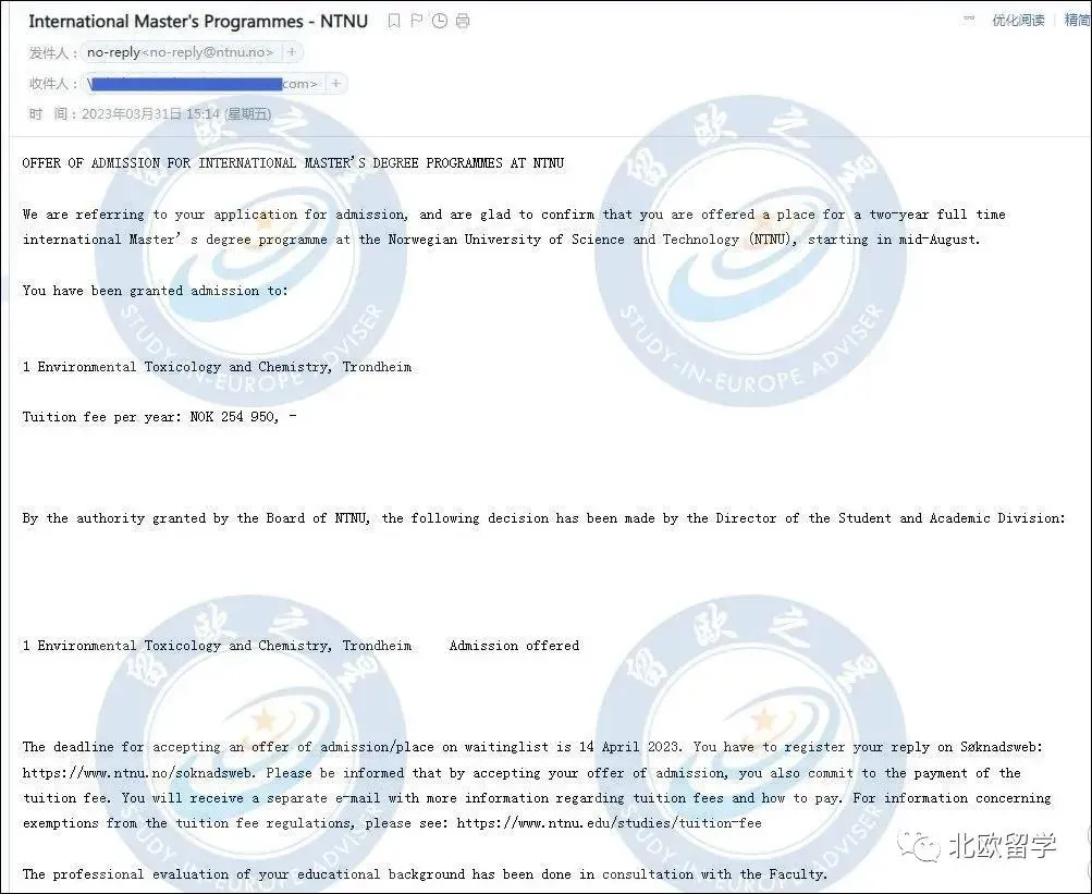 录取院校&专业:瑞典隆德大学 硕士预科 生产和材料工程