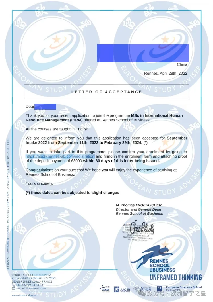 录取院校&专业:法国斯特拉夫堡高等商学院(GE管理学硕士)