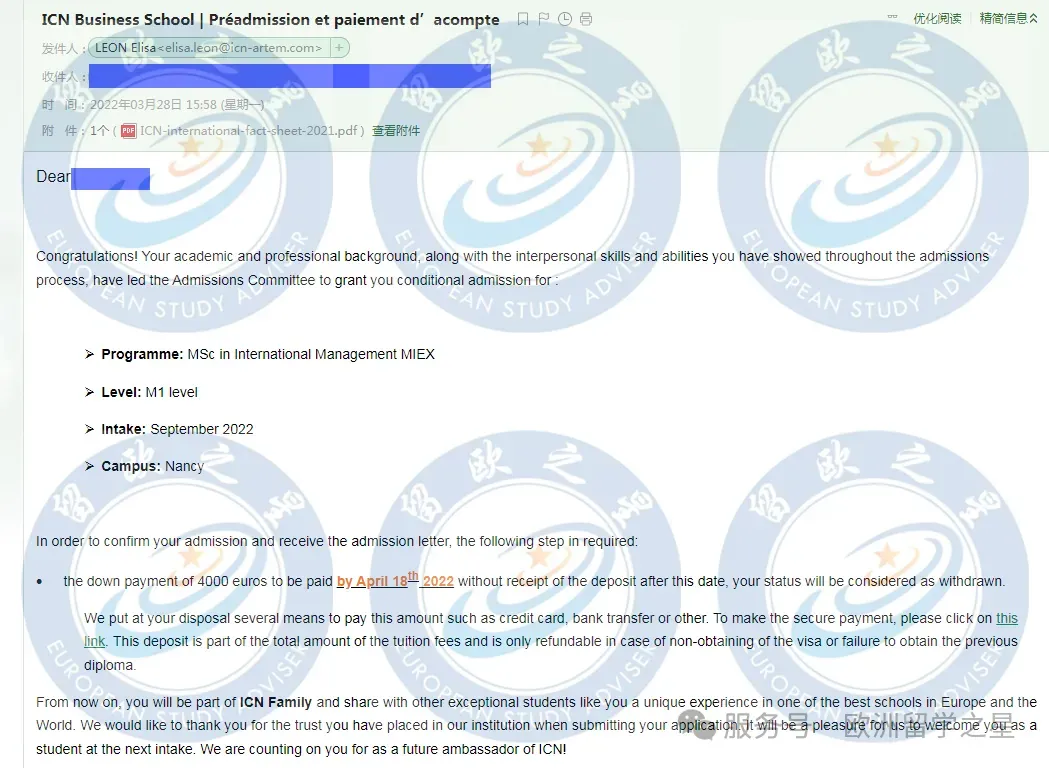 4、法国南特高商 (GE项目管理学硕士)同时获得25% tuition waiver (Solidarity Scholarship)