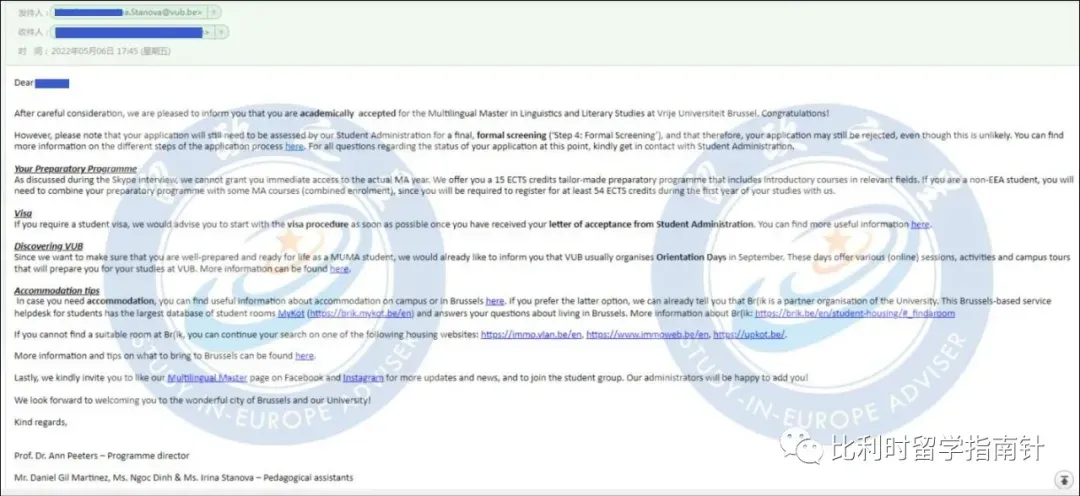 2、比利时布鲁塞尔自由大学&语言学和文学研究硕士