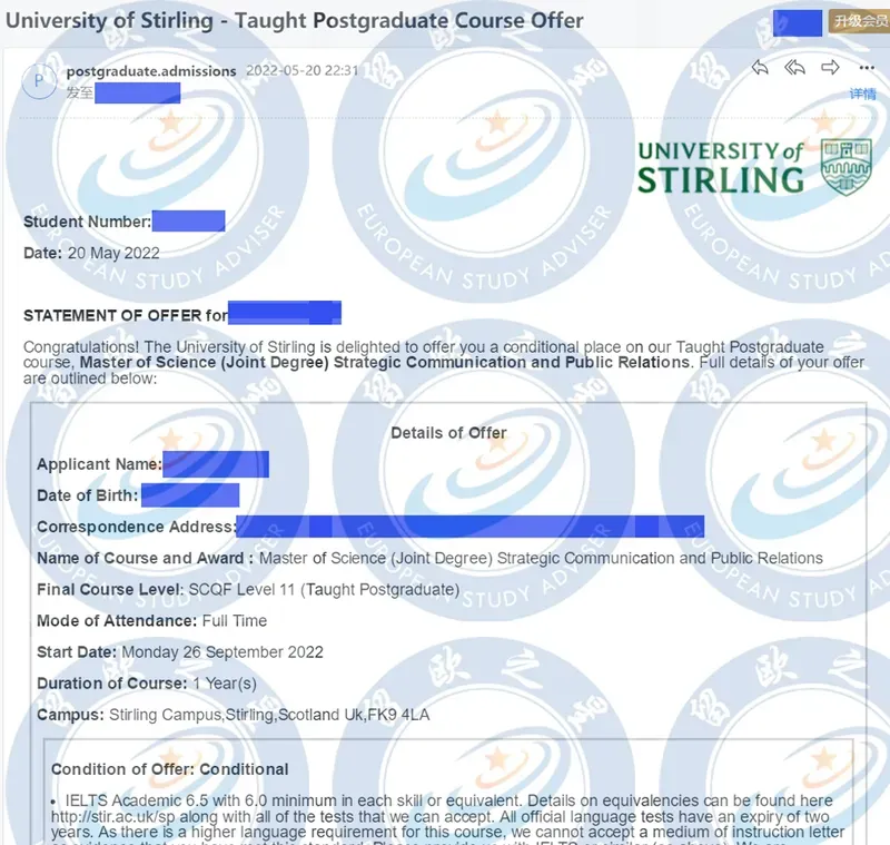 2、英国斯特林大学 (战略沟通与公共关系硕士)