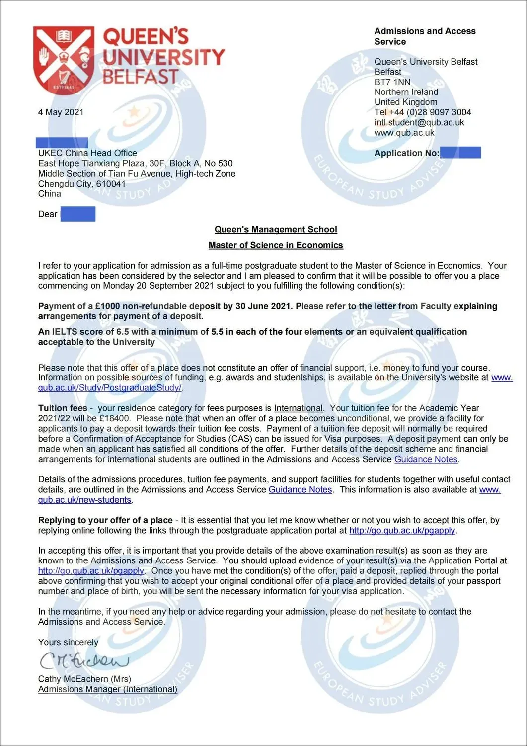 4、英国贝尔法斯特女王大学 (经济学硕士)