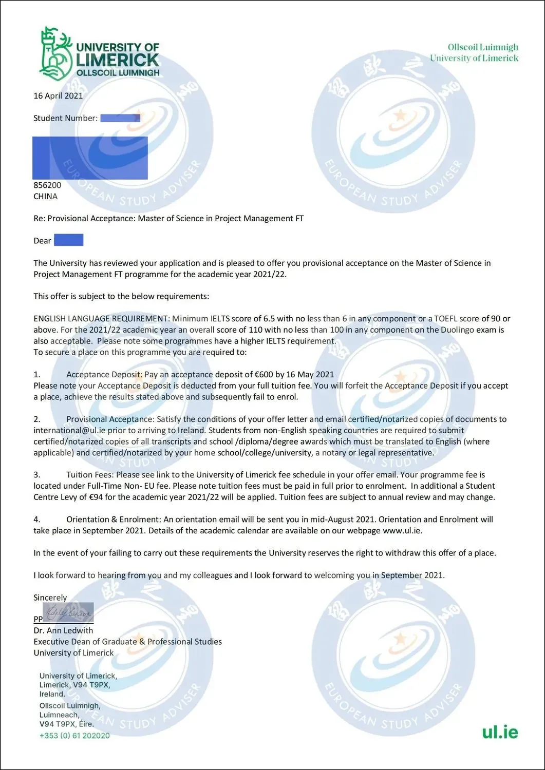 3、爱尔兰利莫瑞克大学 (项目管理硕士)